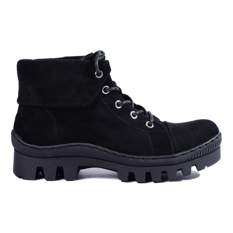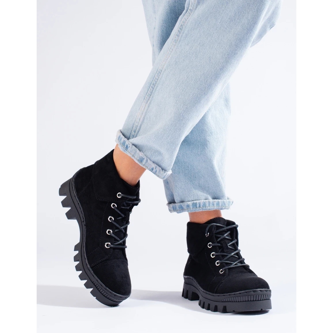 Les trappeurs féminins élégants et universels qui fonctionneront tous les jours. Fabriqué en daim écologique en noir classique, ils combinent le confort avec un look élégant et décontracté.