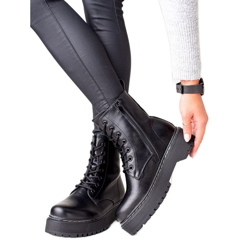 Découvrez le style et le confort avec les bottines plateforme noires de la marque Evento ! Ces bottines à la mode sont le choix parfait pour l'automne et l'hiver, alliant style décontracté et design moderne. Fabriqués en cuir écologique de haute qualité, ils garantissent non seulement l'esthétique, mais aussi la durabilité.