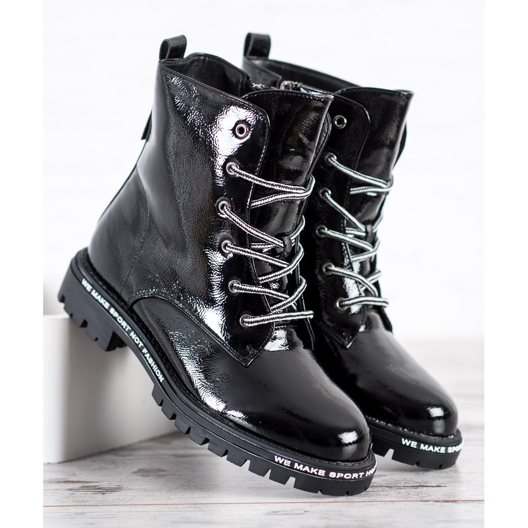 Les chaussures sont fermées par des lacets et une fermeture éclair, ce qui les rend faciles à enfiler et à enlever, et le talon plat de 3,5 cm vous permet de profiter de stabilité et de confort tout au long de la journée. La semelle en plastique avec bande de roulement offre une bonne adhérence aussi bien sur les trottoirs en ville que dans des conditions plus difficiles.