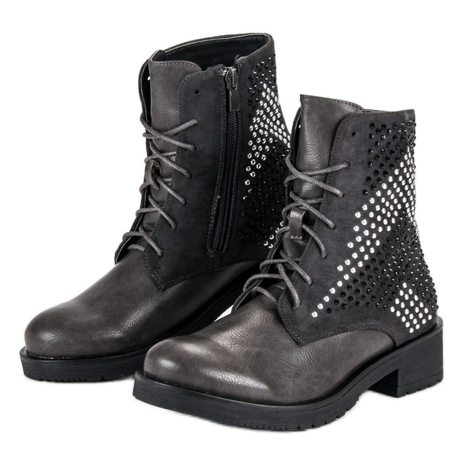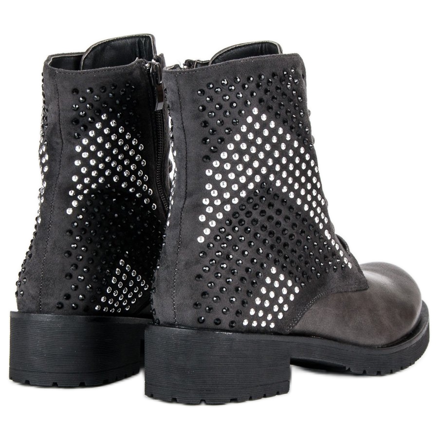 Fabriquées en daim de haute qualité et en cuir écologique, les bottes sont non seulement élégantes, mais aussi durables. Les ouvriers gris se distinguent par une décoration intéressante sous forme de petits zircons noirs et argentés, qui leur confèrent un caractère rock. L'isolation en fourrure les rend parfaites pour les journées froides, offrant à vos pieds confort et chaleur.