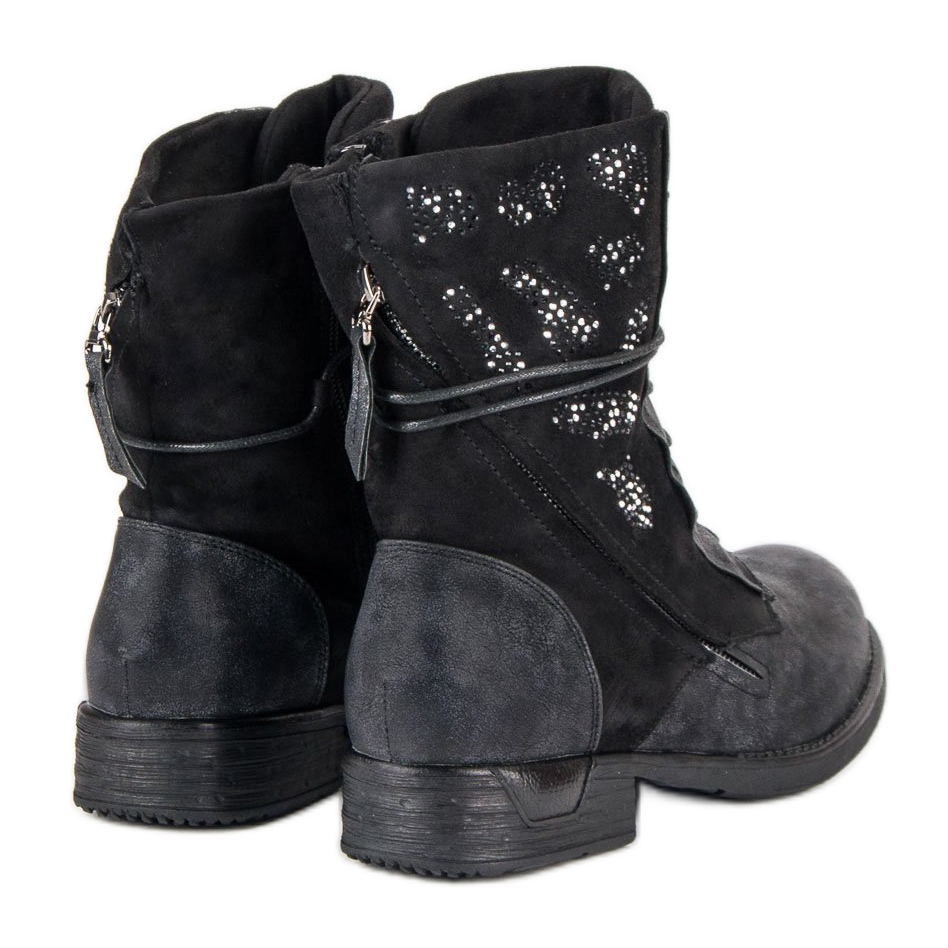 Les ouvriers se distinguent par leur finition en daim, ornée de zircons brillants. Grâce à cela, chaque paire attire l'attention et ajoute du caractère même au style le plus simple. De plus, un talon bas de 3 cm les rend confortables à porter toute la journée, sans sacrifier un look tendance.