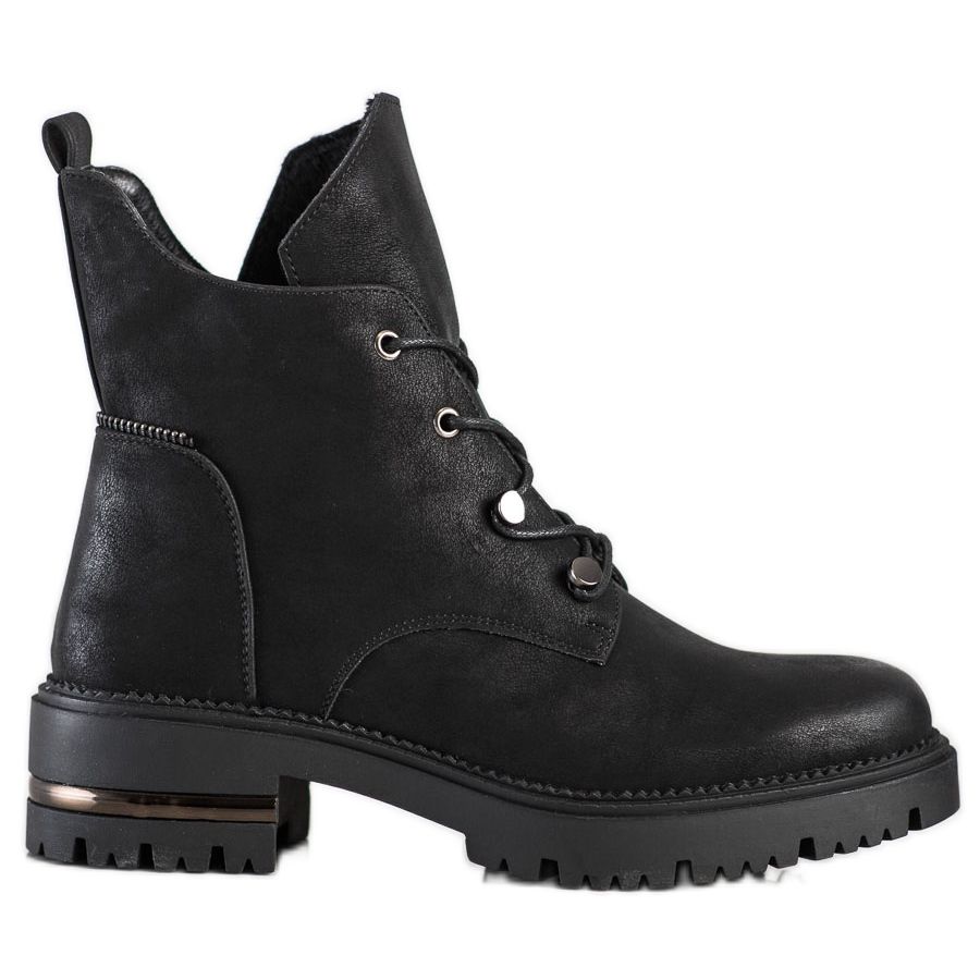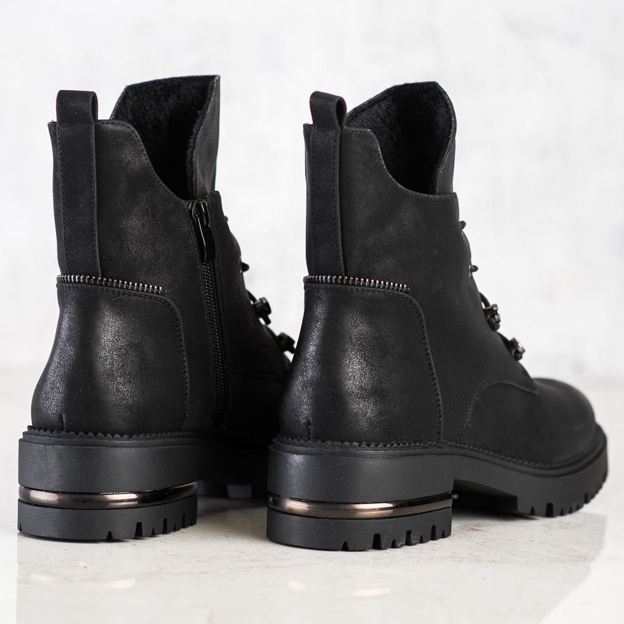 Disponibles dans une couleur noire tendance et sans motif, ils seront un complément parfait à toute garde-robe. La hauteur supérieure de 15 cm arrive au-dessus de la cheville, ce qui ajoute du caractère. Les avantages supplémentaires incluent une fermeture éclair pratique et des fermetures à lacets qui permettent un ajustement parfait au pied.