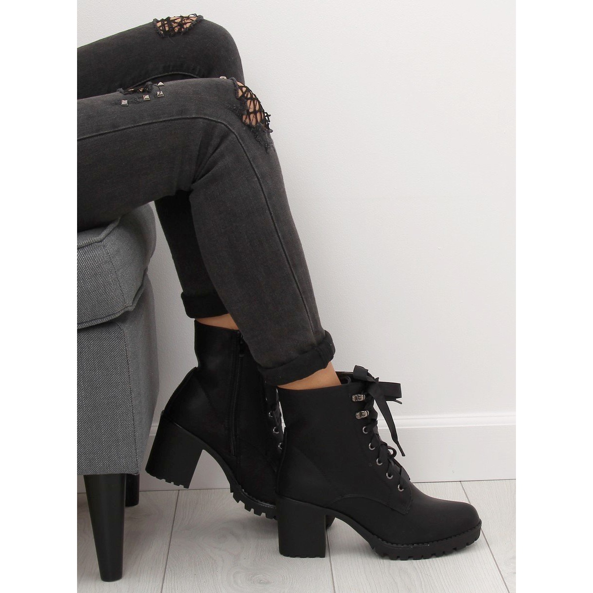 Le look stylé des chaussures est donné par le laçage avec un large ruban, qui leur donne du caractère. De plus, l'ensemble comprend également des lacets traditionnels, vous donnant la possibilité de changer de style selon vos préférences. Grâce à la fermeture éclair latérale pratique, enfiler et enlever les chaussures devient extrêmement facile, ce que toutes les femmes occupées apprécieront certainement.