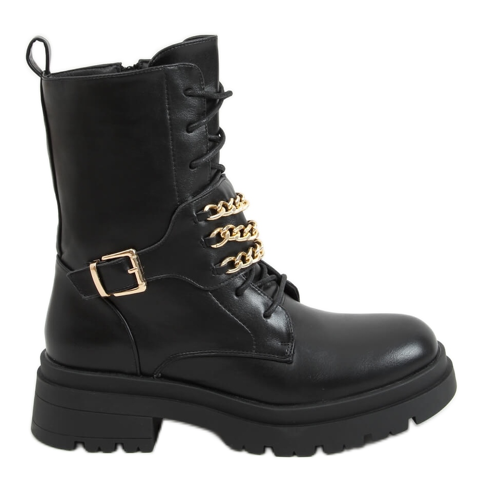 Découvrez une nouvelle dimension de confort et de style avec les ouvriers PA1 noirs, qui deviendront un élément indissociable de votre garde-robe ! Les bottines pour femme à talon large de 5 cm allient la simplicité du design à des accents modernes, comme les chaînes dorées placées sur le devant. C'est un modèle idéal pour les femmes qui apprécient non seulement la mode, mais aussi l'aspect pratique.