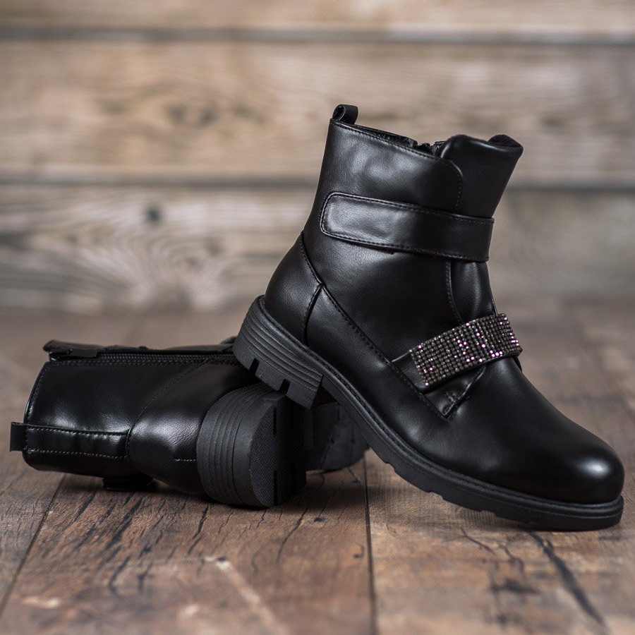 Nous vous présentons les chaussures Evento Workery avec cristaux en noir - la combinaison parfaite entre style rock et élégance. Ces bottes inhabituelles à talons bas attireront certainement l'attention de toutes les femmes sûres d'elles qui apprécient le design unique et le confort de port.