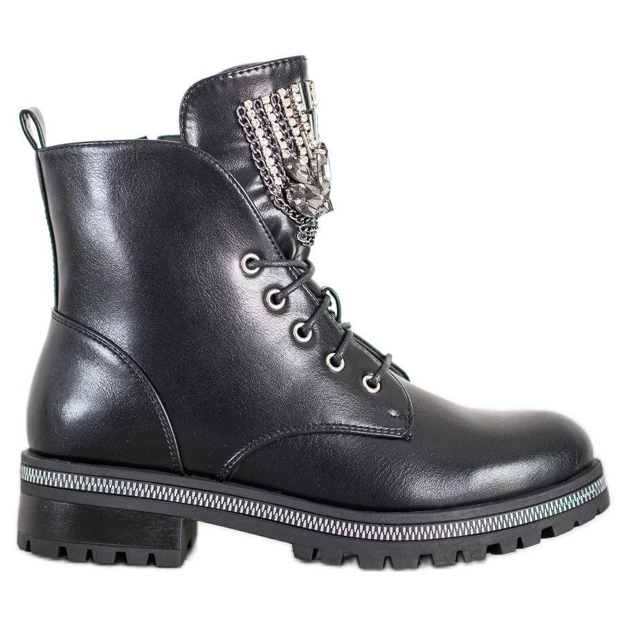 Un avantage supplémentaire est l'isolation, qui rend les chaussures parfaites pour les journées les plus froides. Le style décontracté et rock reflète parfaitement leur caractère, et de délicats cristaux sur la tige ajoutent de l'élégance et un accent unique.