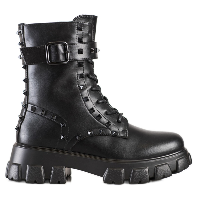 Découvrez des ouvriers uniques d'Erynn qui allient style et confort. Ces bottes noires, ornées d'élégants clous noirs, sont un choix parfait pour les femmes qui apprécient un look tendance et un confort au quotidien. Le matériau extérieur de haute qualité en cuir écologique assure durabilité et aspect esthétique, tandis que l'intérieur en matériau textile garantit un confort de port.