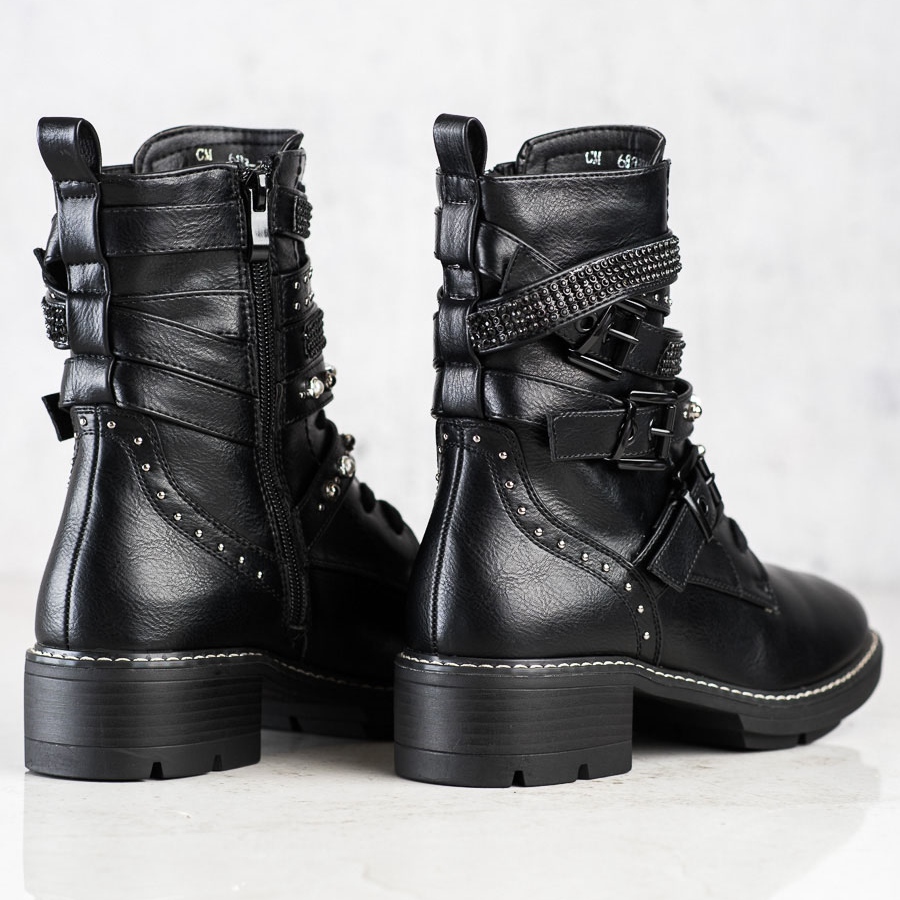 Nous vous présentons les ouvriers Cm Paris à bretelles décoratives dans une élégante couleur noire, le choix parfait pour la saison automne/hiver. Ces bottines élégantes allient style décontracté et rock, ce qui en fait un complément parfait à tout style de tous les jours.