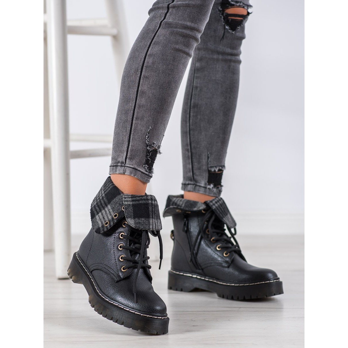 Un avantage supplémentaire de ces bottes est la possibilité de relever la tige, ce qui permet de modifier librement leur apparence en fonction de l'occasion. Les lacets et la fermeture éclair facilitent l'enfilage et le retrait des chaussures.