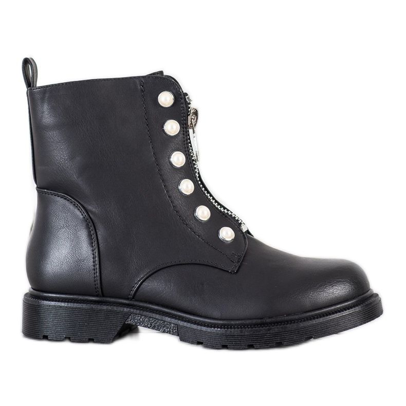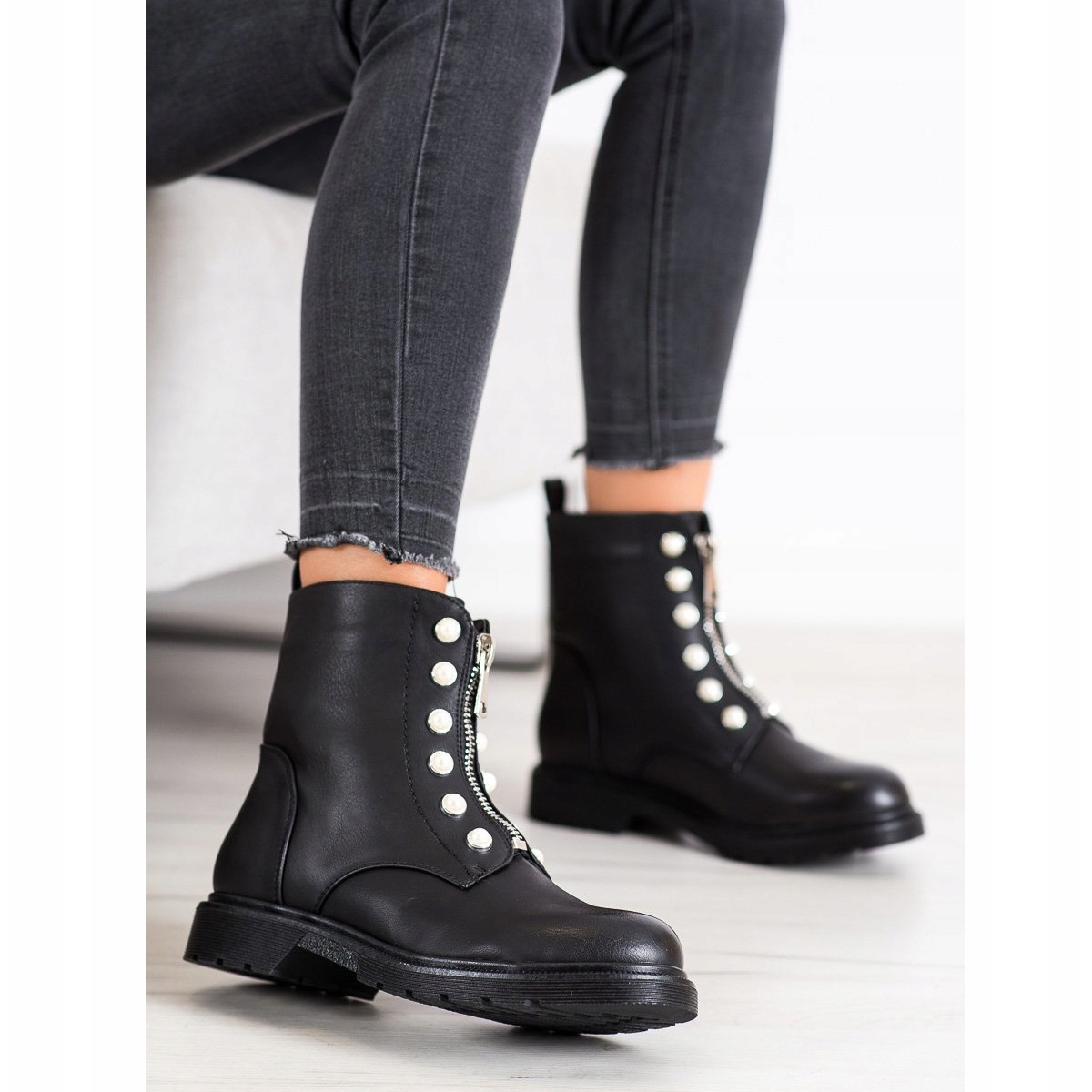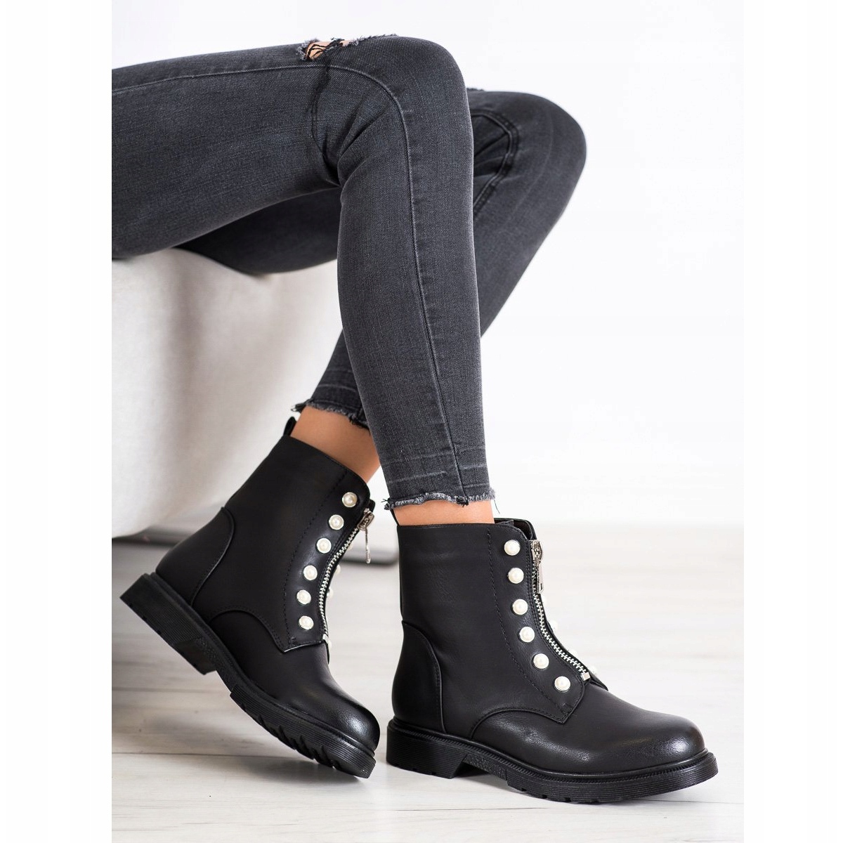 Fabriqués en cuir écologique, ils sont extrêmement impressionnants. Leur bout rond et leur tige spacieuse arrivant au-dessus de la cheville (14-15 cm) assurent confort et facilité de port. Des strass supplémentaires leur donnent du caractère et le talon renforcé et renforcé rend les chaussures non seulement esthétiques, mais aussi extrêmement confortables.