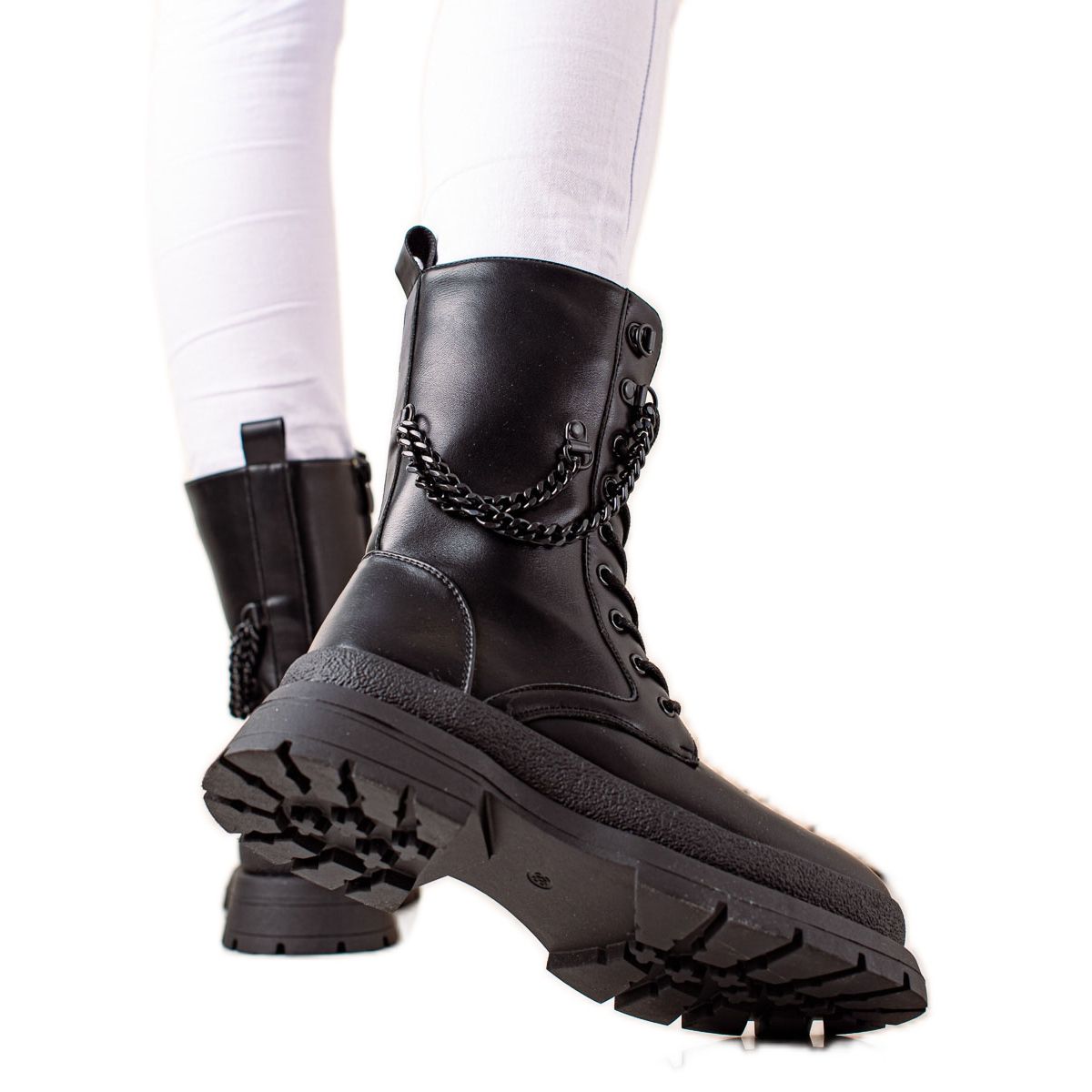 Les travailleurs isolés Bona avec chaîne en noir sont une proposition idéale pour les femmes qui apprécient à la fois le style et le confort au quotidien. Ces bottes tendance se distinguent par un talon solide et intégré, qui offre un excellent maintien et un excellent confort au porté. Fabriqués dans un cuir écologique de qualité, ils sont non seulement respectueux de l'environnement, mais également faciles à entretenir.