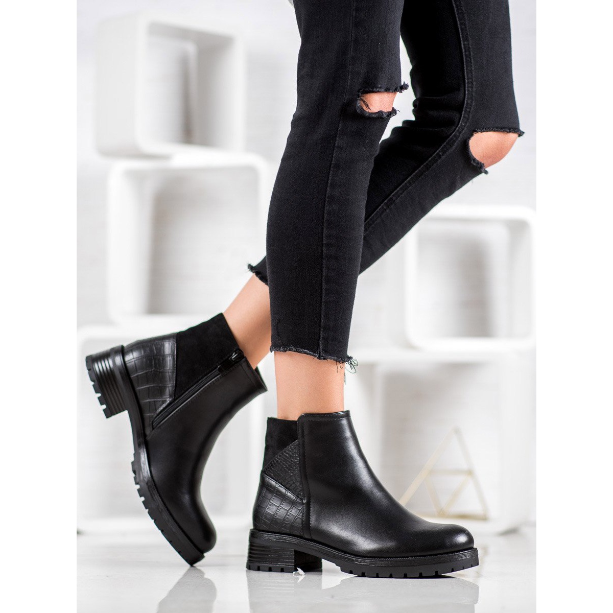 Les plateformes noires classiques de la marque Bestelle sont le choix parfait pour les femmes qui recherchent des chaussures confortables et élégantes pour l'automne et l'hiver. Ces bottines sont fabriquées dans un matériau semblable au cuir de haute qualité, ce qui garantit non seulement un aspect esthétique, mais également un confort de port.