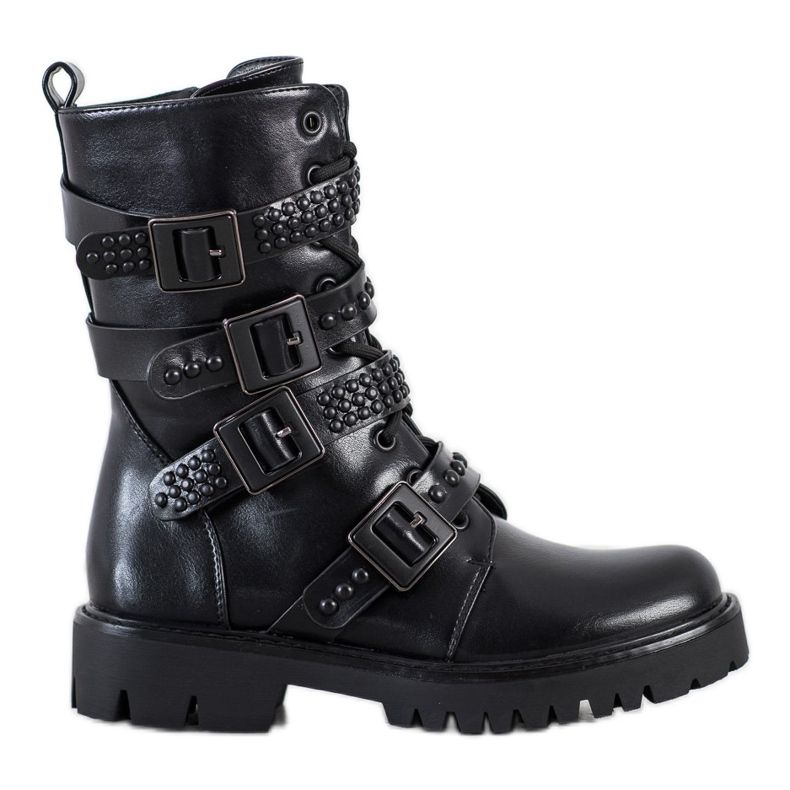 Fabriquées en cuir écologique, avec des strass et des boucles décoratives, ces bottines sont un choix parfait pour les femmes qui apprécient la mode et le confort. Un talon plat de 4 cm de haut et une plateforme de 2,5 cm garantissent stabilité et confort de port, et la semelle crantée assure une bonne adhérence.