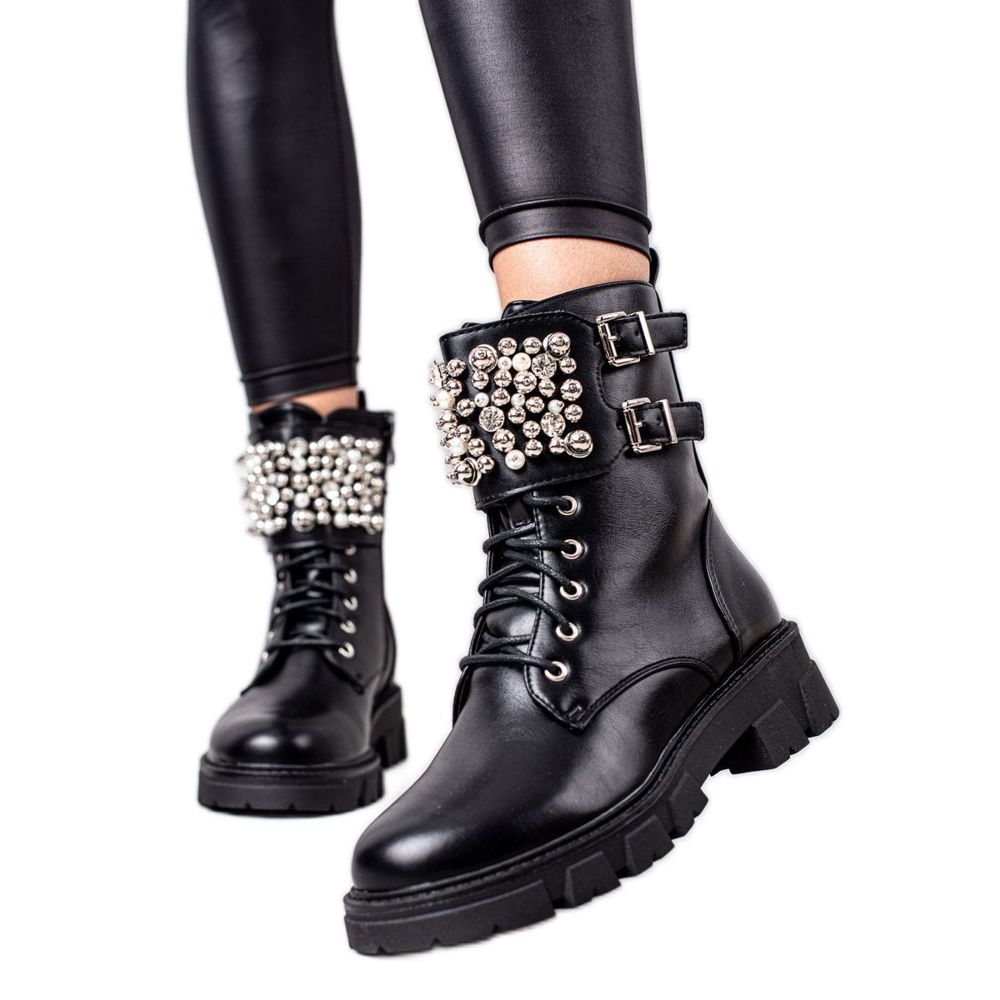 Leur couleur noire leur permet de s'adapter à presque tous les styles, du plus décontracté au plus élégant. Ornés de strass, de strass et de clous, ces ouvriers attirent le regard et ajoutent une touche d'élégance à n'importe quelle tenue.