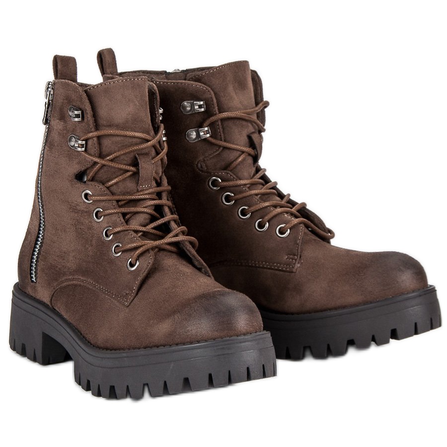 Fabriquées en daim écologique, les bottes de travail marron sont non seulement élégantes, mais sont également respectueuses de l'environnement. Leur design unique avec un laçage unique sur le devant et une fermeture éclair pratique sur le côté les rend faciles à enfiler et à enlever, ce qui les rend encore plus attractifs au quotidien. La semelle épaisse de 4 centimètres avec bande de roulement offre non seulement un look élégant et massif, mais également une excellente adhérence sur les surfaces difficiles.