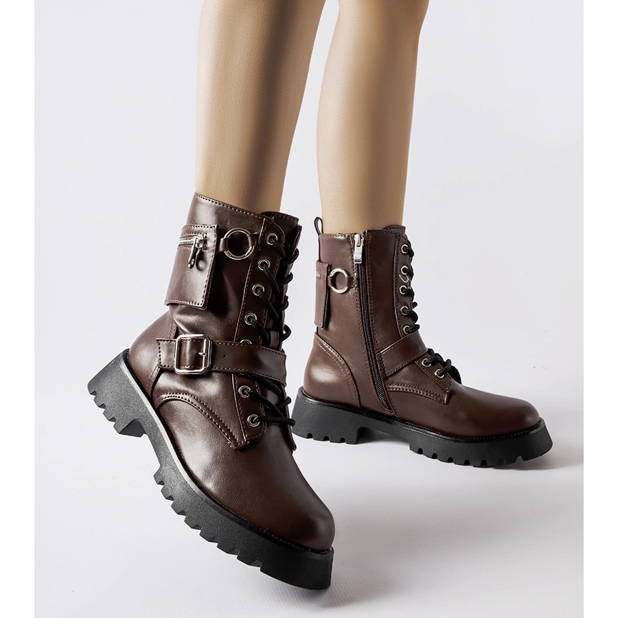 - Couleur: marron (marron) avec des accents noirs; semelle noire