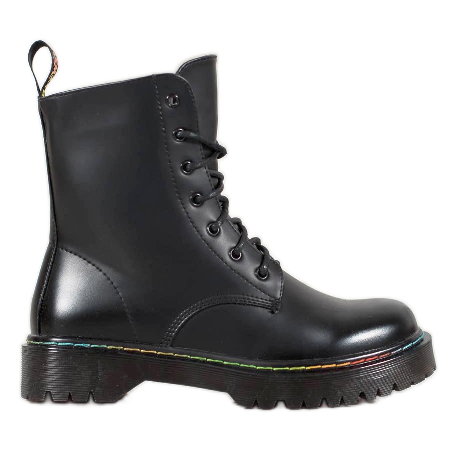 Grâce à la bordure décorative et colorée autour de la semelle, ces ouvriers attirent l'attention et diversifient n'importe quel style. Un talon haut massif de 3,5 cm, combiné à une plateforme de 2 cm, garantit un confort au quotidien, et la semelle crantée assure la stabilité sur diverses surfaces.