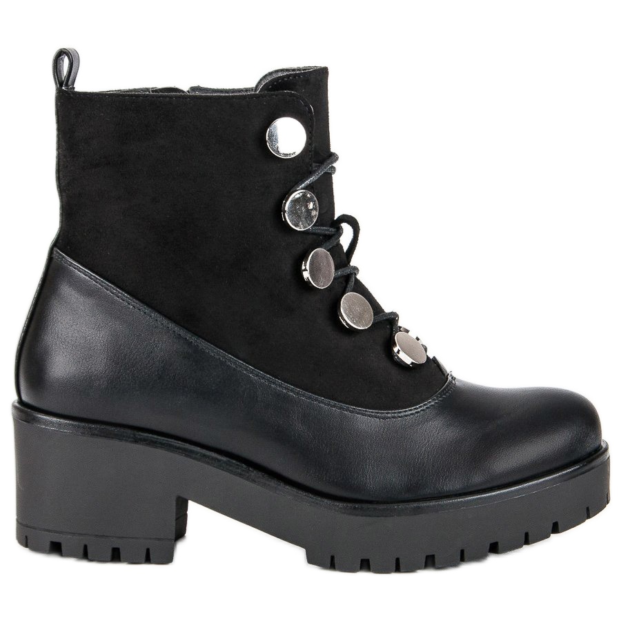 La fermeture à lacets assure un ajustement parfait, tandis que le bout rond et le talon plat de 6 cm assurent un confort de port tout au long de la journée. La couleur noire et le design minimaliste rendent ces ouvriers adaptés aussi bien aux tenues de tous les jours qu'aux tenues plus élégantes.
