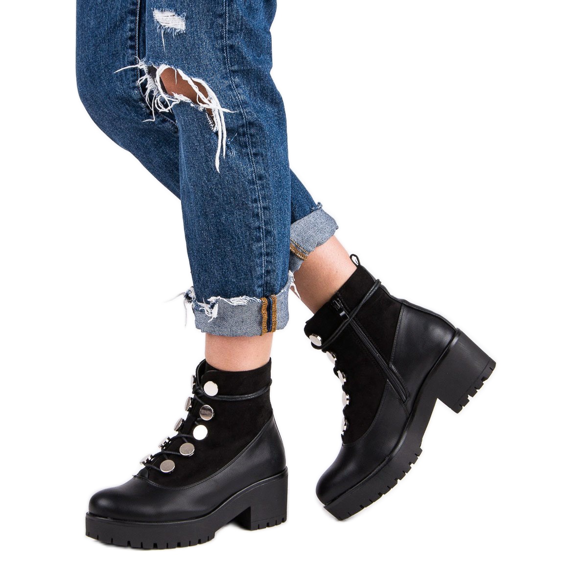 Détails: Queen Vivi Travailleurs lacés noir