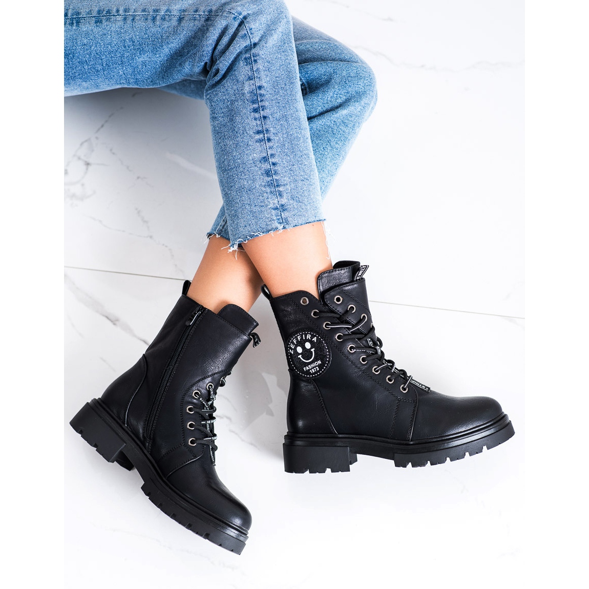 Découvrez l'élégance noire et le confort offerts par les travailleurs d'Evento avec l'application. Ces bottines uniques sont le choix parfait pour les femmes qui souhaitent allier style et confort dans leur style de tous les jours. Fabriqués en cuir 100% écologique, ils sont extrêmement attrayants et attirent le regard par leurs détails.