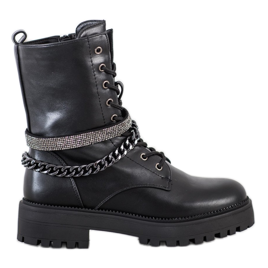 Seastar Black Workers With Chain est une proposition idéale pour les femmes qui apprécient l'apparence et le confort à la mode. Ces bottes noires élégantes sont fabriquées en cuir écologique de haute qualité, ce qui les rend non seulement esthétiques, mais également respectueuses de l'environnement.