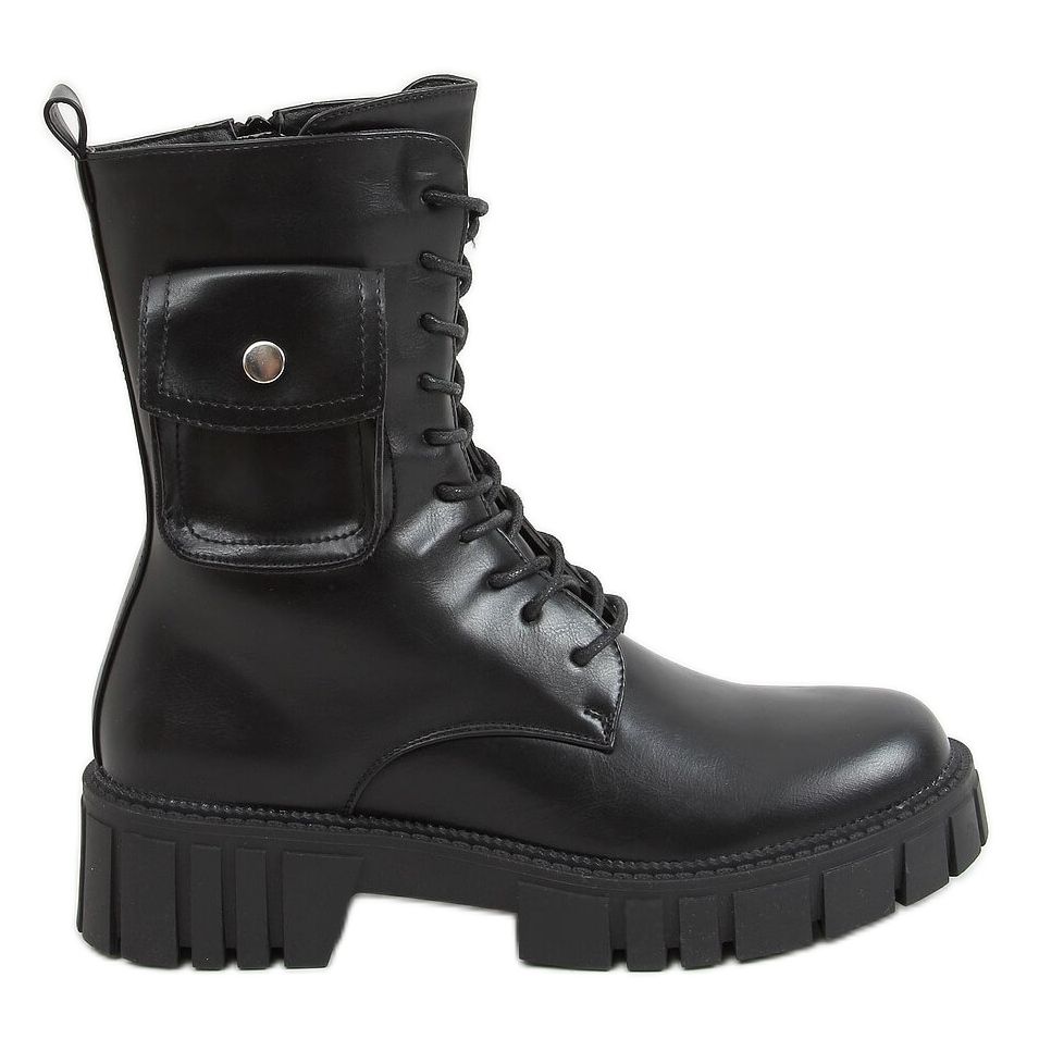 Nous vous présentons des bottes à lacets pour femmes - des travailleuses avec une poche en noir classique, qui sont le complément parfait à tout style de tous les jours. Ce modèle se distingue non seulement par sa coupe universelle, mais aussi par son accent original sous forme de poche pratique, qui lui confère un caractère unique.