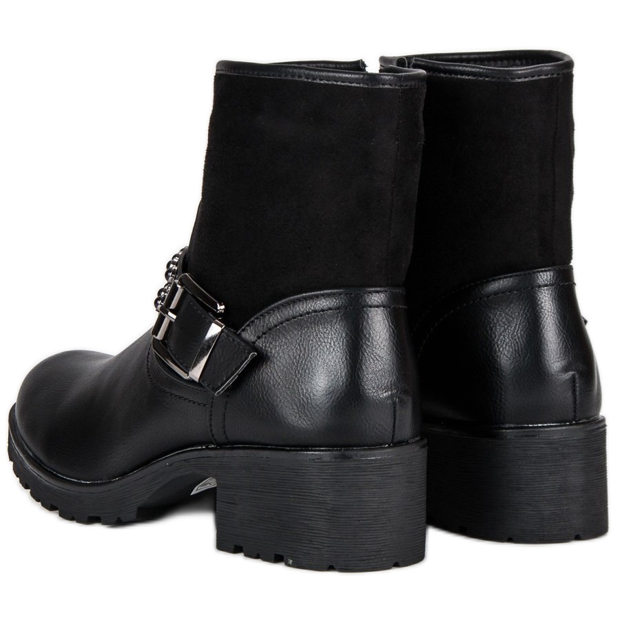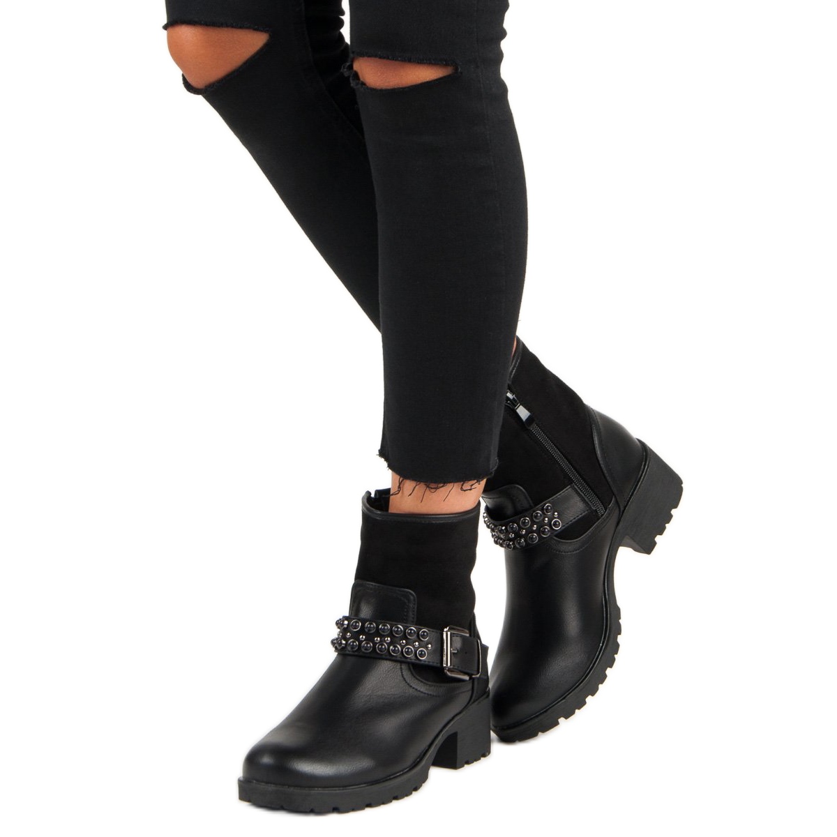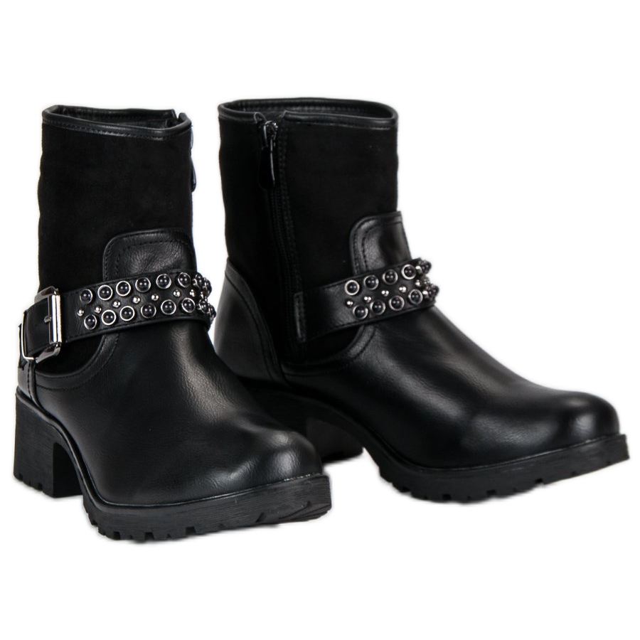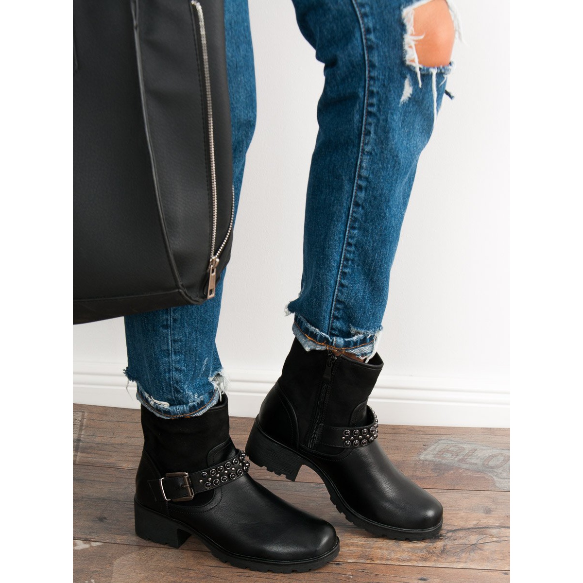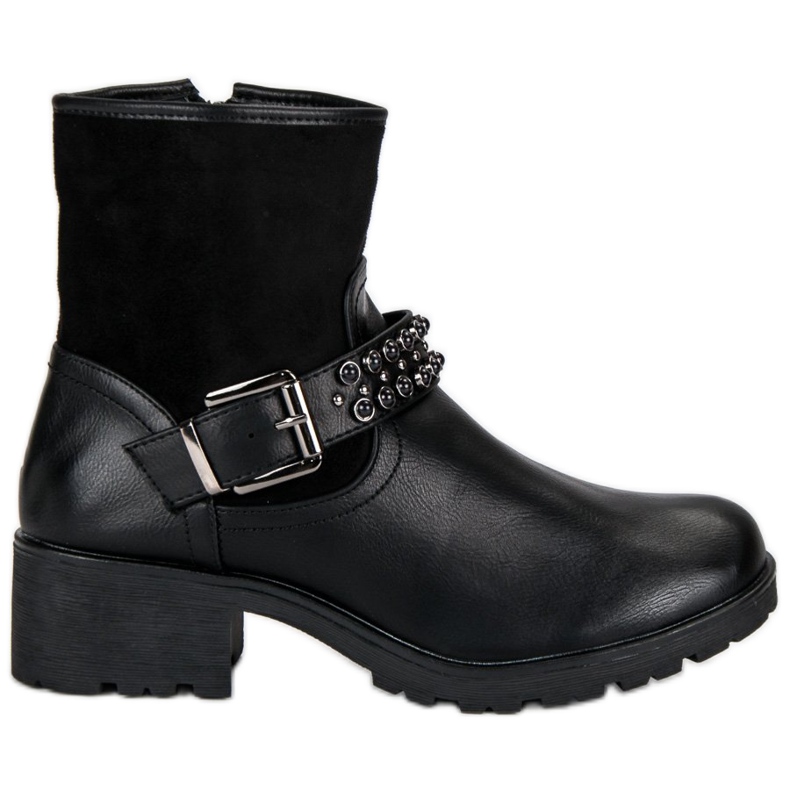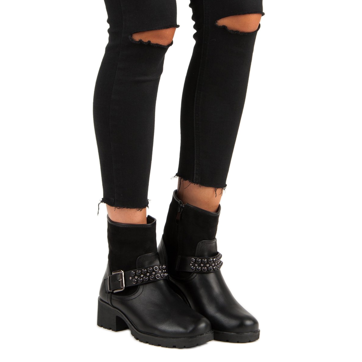 L'intérieur des bottes est doublé de peau de mouton chaude, ce qui en fait un choix parfait pour les journées froides. La couleur noire, toujours au top, rend ces ouvriers faciles à assortir avec différents styles, du plus décontracté au plus élégant. Une boucle décorative et des détails avec strass ajoutent du caractère, et la faible hauteur du talon (5 cm) assure un confort tout au long de la journée.