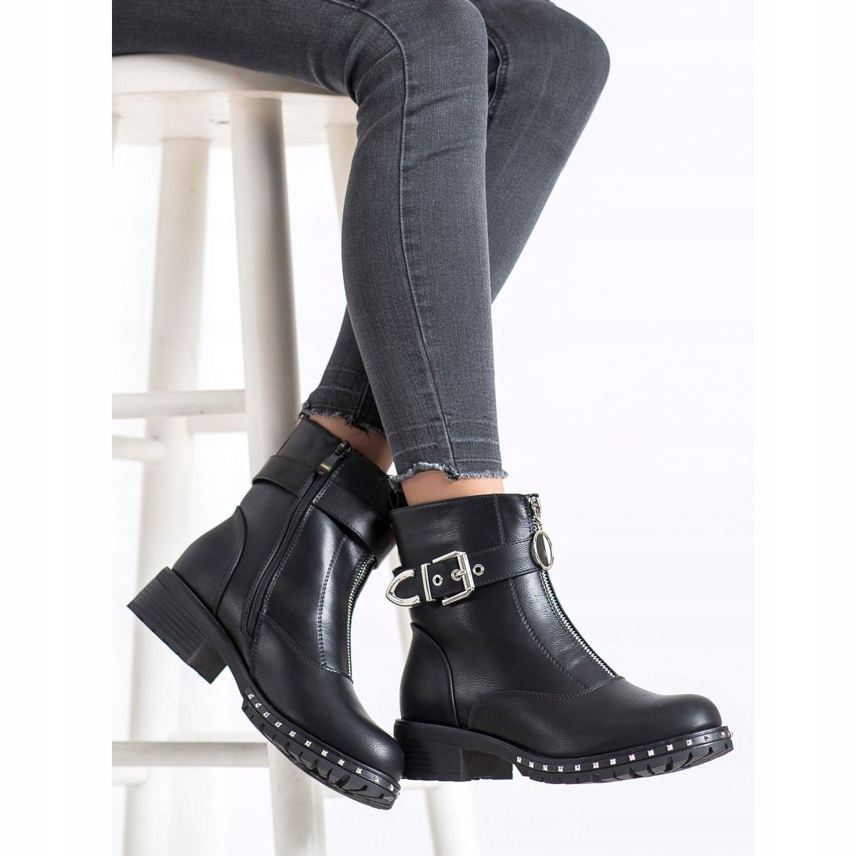 Nous vous présentons d'élégantes bottes de travail noires de la marque Kayla, qui allient parfaitement mode et confort. Ces chaussures noires uniques pour femmes, faisant partie de la collection KeeShoes, seront le complément parfait à tout style décontracté et rock pour l'automne et l'hiver.