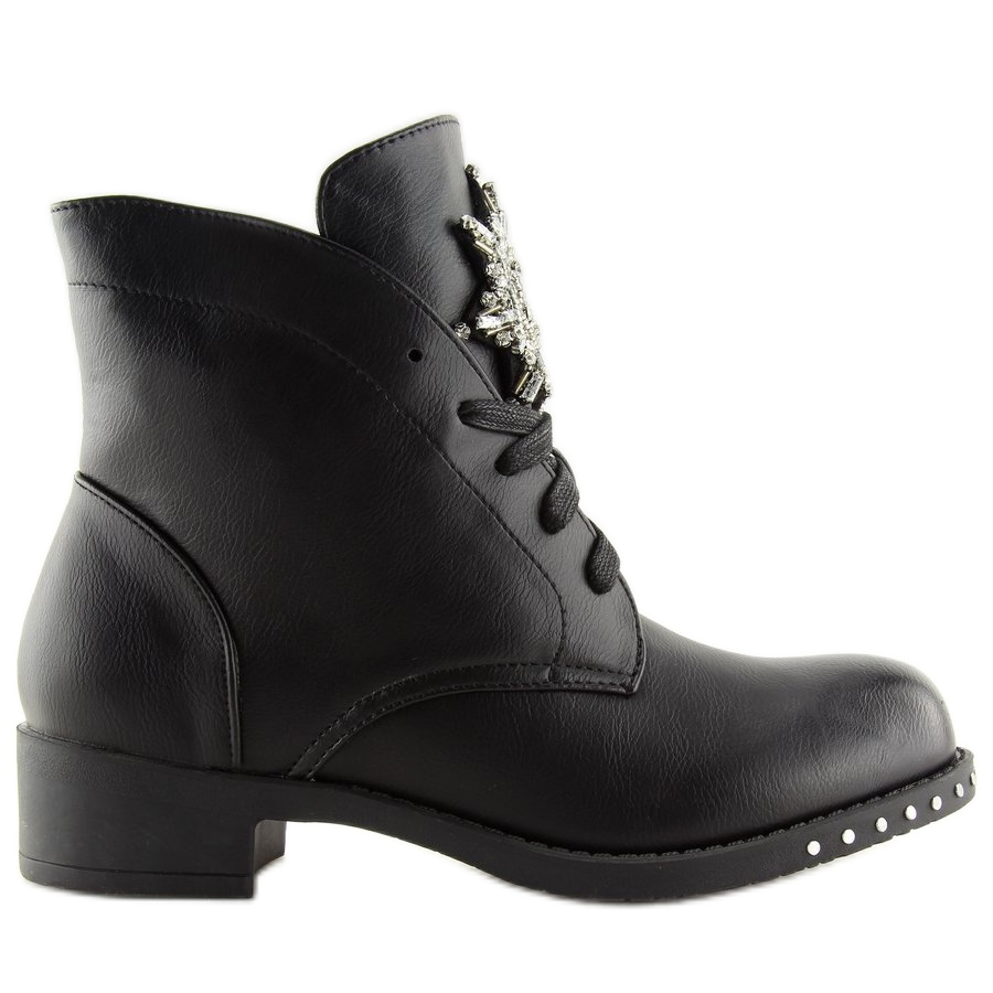 Enrichissez votre garde-robe avec des bottines à lacets uniques pour femmes - des travailleurs dans une élégante couleur noire. Le modèle 100-902BO-1 Black est une combinaison de style et de confort qui attirera certainement l'attention. La doublure caractéristique avec des rivets décoratifs et la languette accrocheuse parsemée de pierres brillantes distinguent ces ouvriers du lot.