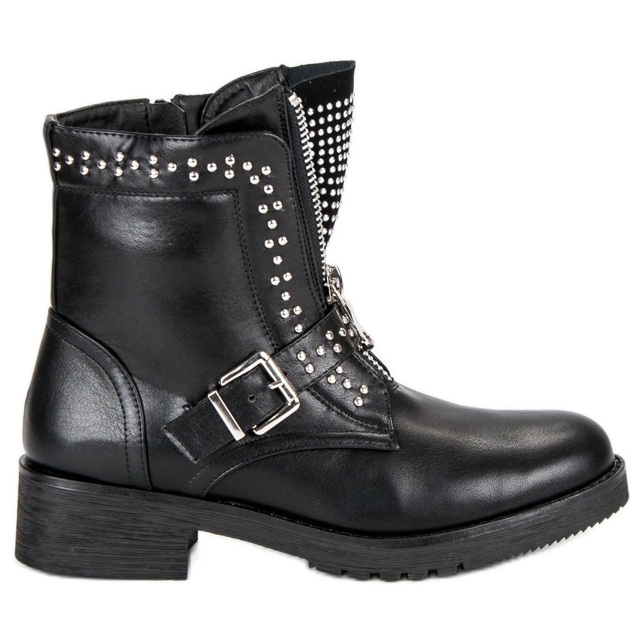 La semelle épaisse et crantée garantit stabilité et sécurité à chaque pas, quelles que soient les conditions météorologiques. Le talon bas et plat de 4 cm de haut permet un port prolongé sans alourdir la colonne vertébrale. Des éléments supplémentaires, tels que des strass décoratifs, ajoutent du caractère et distinguent ces ouvriers des autres modèles.