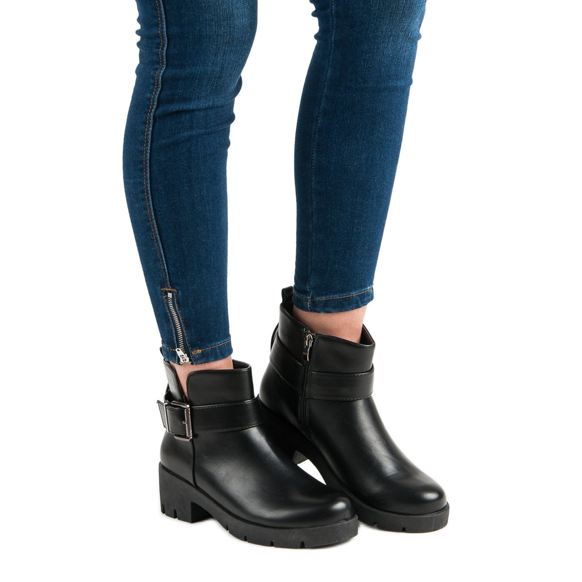Grâce à une plateforme solide de 2 cm de haut et un talon de 5 cm de haut, ces bottes allongent non seulement optiquement vos jambes, mais ajoutent également une touche de fantaisie à n'importe quelle tenue. La boucle décorative est un accent intéressant qui distingue ce modèle des autres. Le contrefort de talon avec une construction douce intégrée assure un confort de port tout au long de la journée.