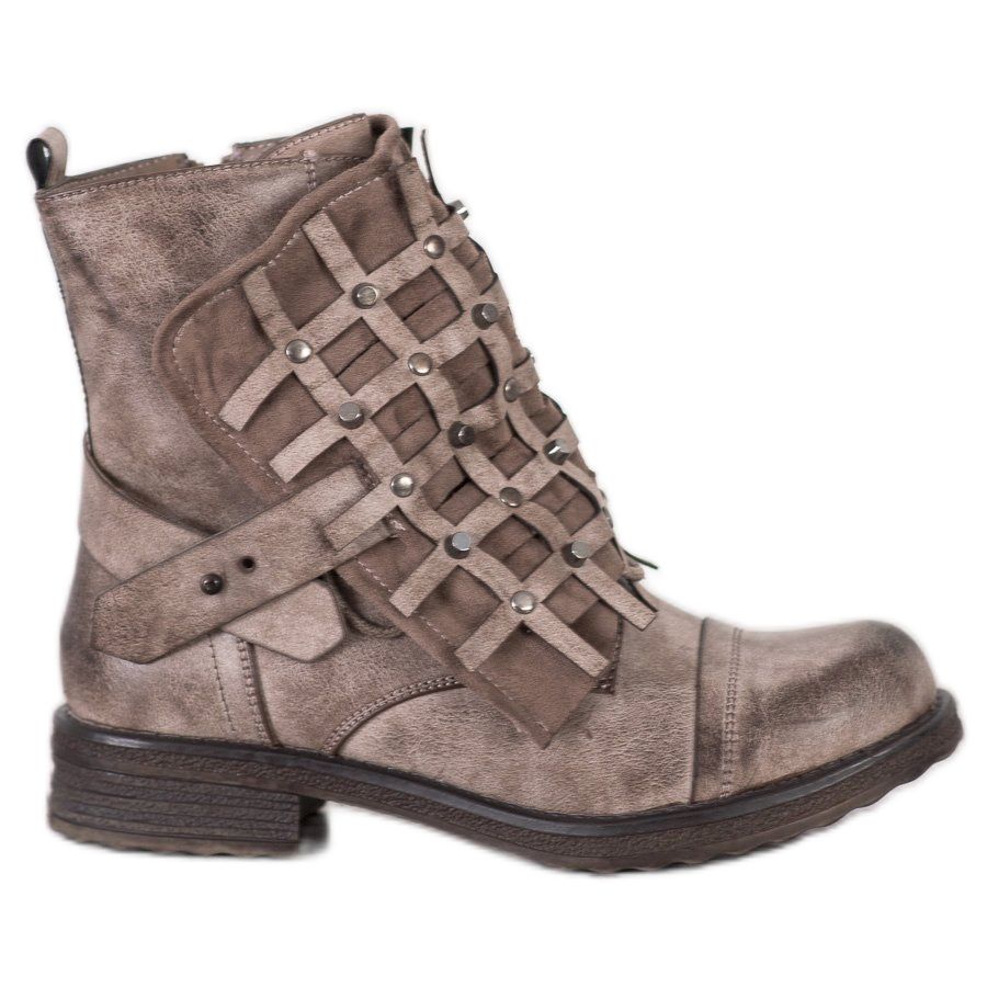 Équipés d'un fermoir souple intégré et d'un bout rond, ils offrent non seulement une apparence attrayante, mais aussi un confort de port. La tige, de 15 à 16 cm de haut, est réalisée en cuir écologique de haute qualité, en outre décorée de strass spectaculaires qui leur confèrent un look extrêmement original et tendance.