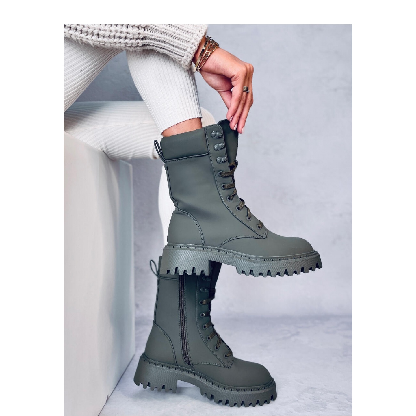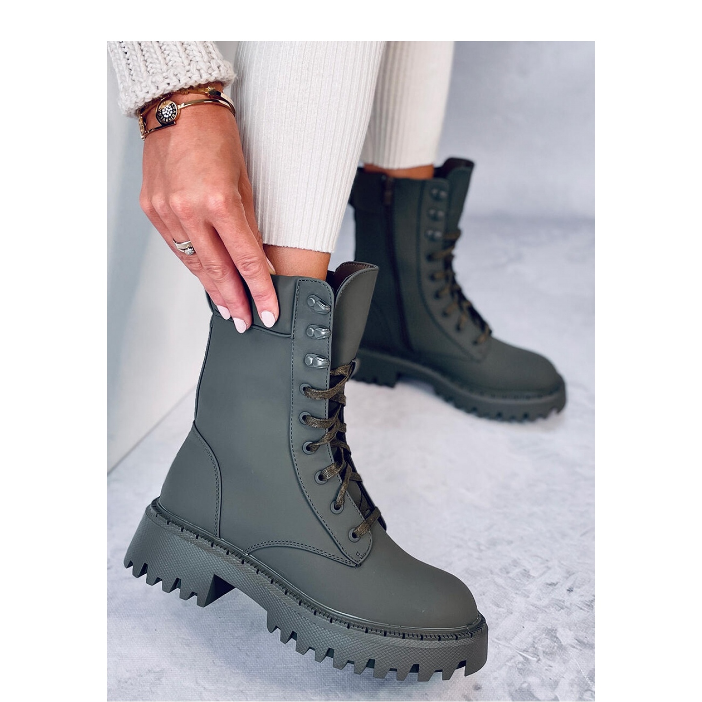 Des bottines pour femmes ? ouvriers sur le protecteur. Il s'agit d'une coupe iconique et intemporelle dans un style militaire. Classiquement lacées, elles s'ajustent parfaitement à la largeur du pied, mais elles disposent également d'une fermeture éclair sur le côté de la tige. Ils sont fabriqués en cuir écologique avec une jolie finition mate. Plus chaud - fourrure délicate.