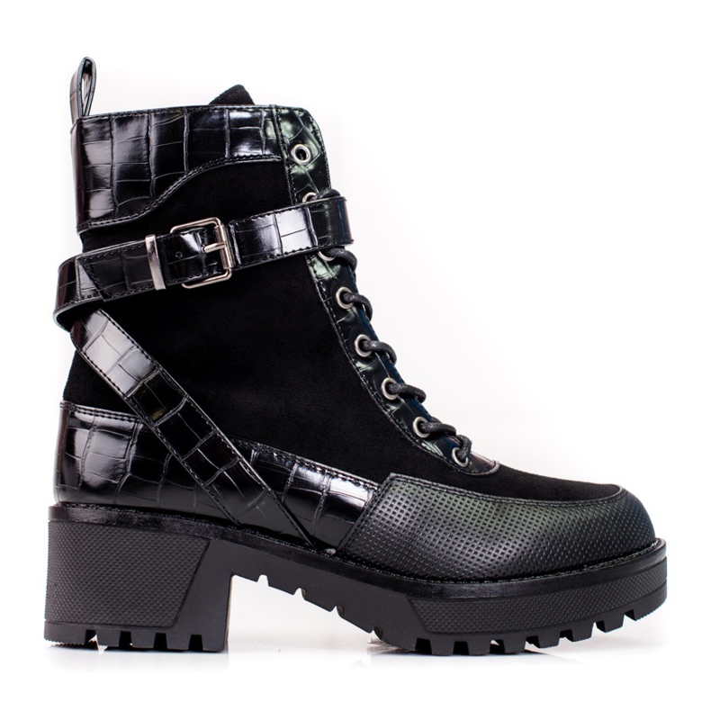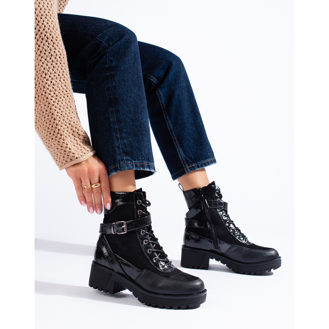 Grâce à la fermeture éclair et au laçage, ces bottes sont non seulement faciles à enfiler, mais vous permettent également de les ajuster à vos besoins individuels. Le motif dominant est le noir classique, ce qui les rend assortis à de nombreux styles différents.