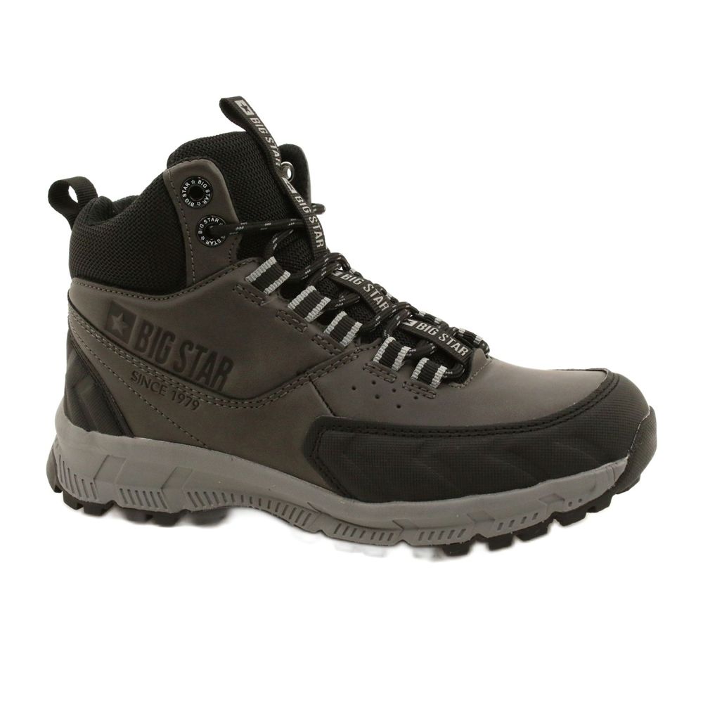 Le trekking féminin moderne, confortable et universel de Big Star, créé pour un usage quotidien. Une tige en cuir écologique dans des tons de gris avec des accents noirs donne un look classique et à la mode qui fonctionnera à la fois dans les stylisations urbaines et pendant l'errance plus courte.