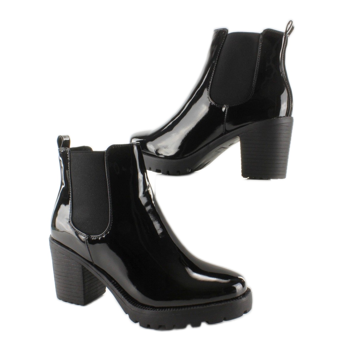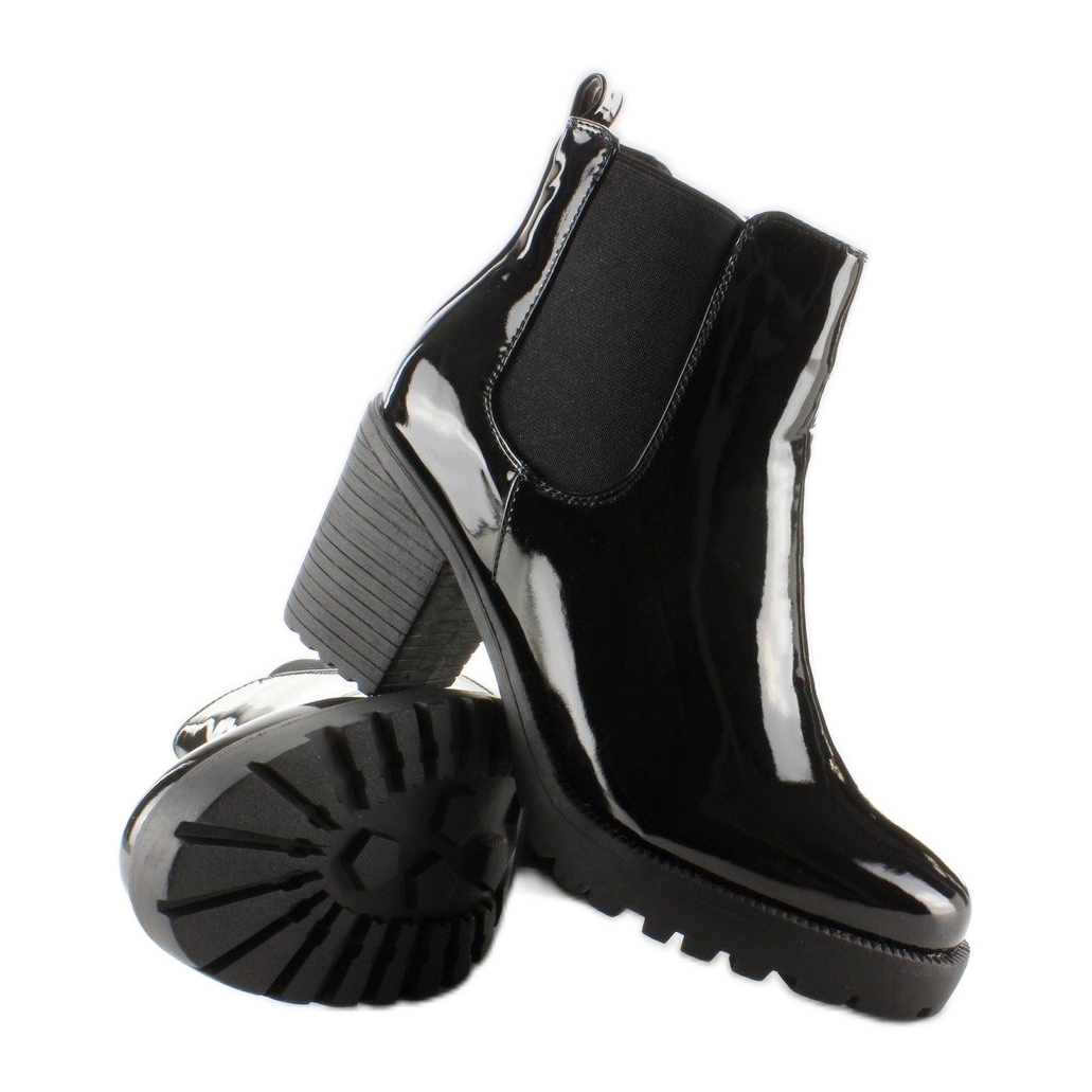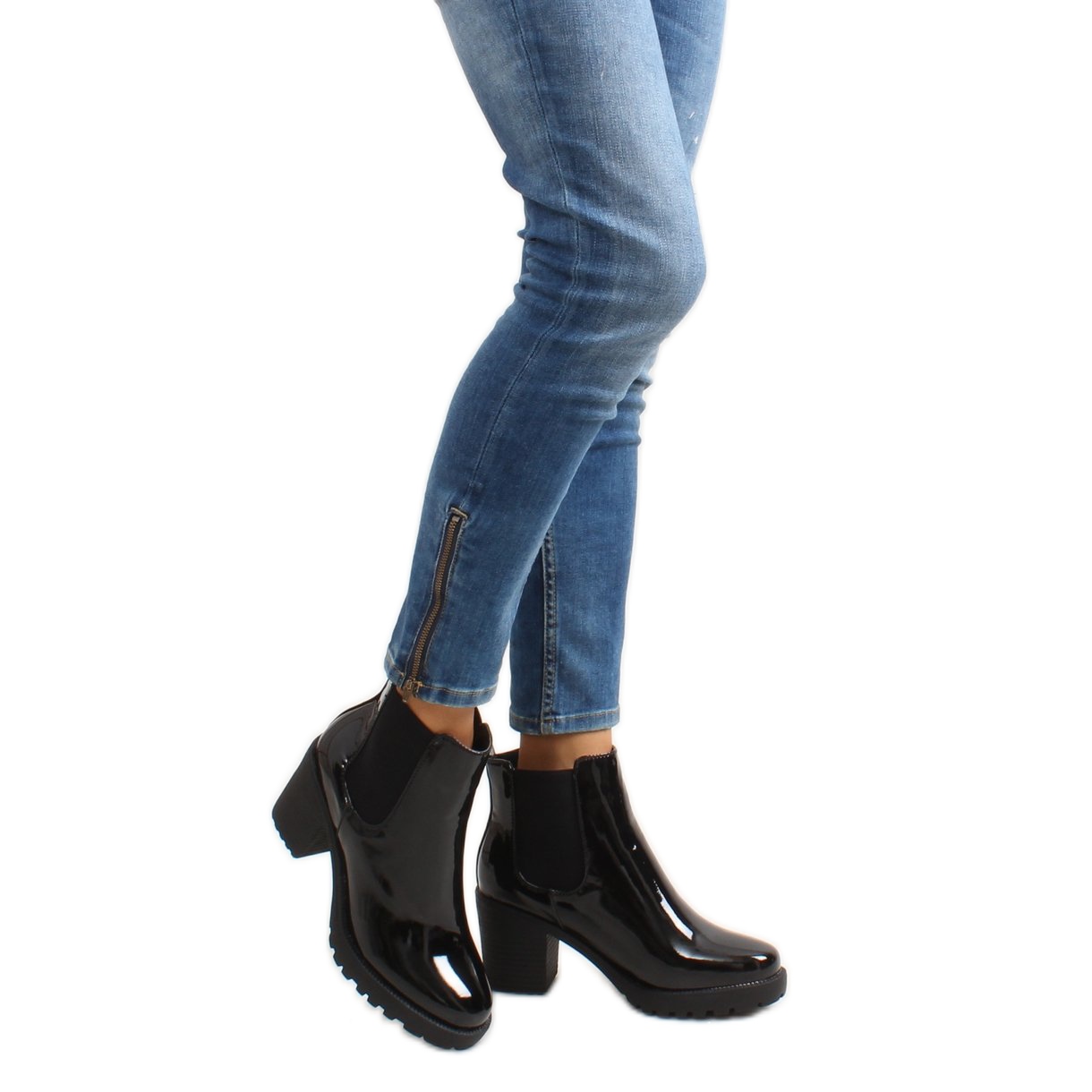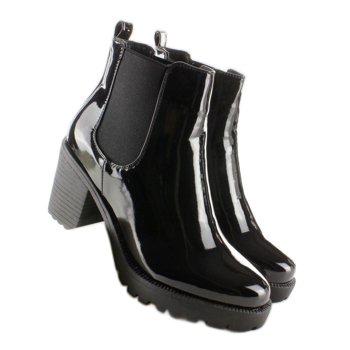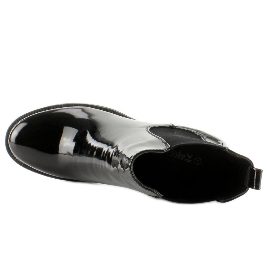 Fabriquées en cuir écologique verni de haute qualité, les bottines Chelsea sont très élégantes. Un bout rond et une semelle solide avec un protecteur rendent les chaussures non seulement esthétiques, mais aussi fonctionnelles. Sur les côtés de la tige se trouvent deux inserts élastiques en caoutchouc qui facilitent l'enfilage et le retrait, ce qui constitue une solution pratique pour les femmes occupées.