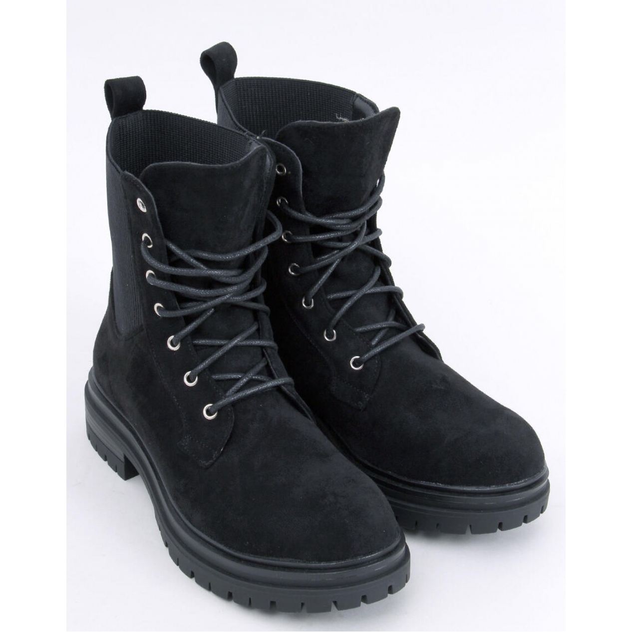 Les bottes sont faites de daim écologique de haute qualité, qui enroule agréablement les pieds, et leur design moderne les fait correspondre à de nombreux styles - tous les jours et ceux pour des occasions spéciales. Grâce au laçage classique, ils peuvent être parfaitement adaptés au tronçon du pied, ce qui garantit le confort de porter toute la journée. Les inserts flexibles sur les côtés facilitent la mise en place, ce qui ajoute de la pratique.