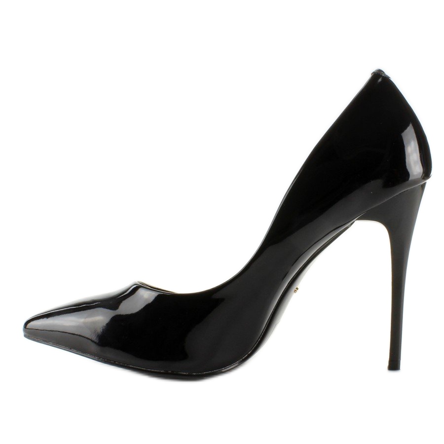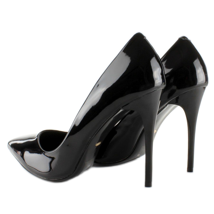 C'est le choix parfait pour les femmes qui souhaitent ajouter un peu d'élégance et de sensualité à leur style - Talons aiguilles vernis lisses noirs E396 en noir. Ces chaussures uniques, créées pour les femmes modernes, deviendront certainement un élément indispensable de toute garde-robe.