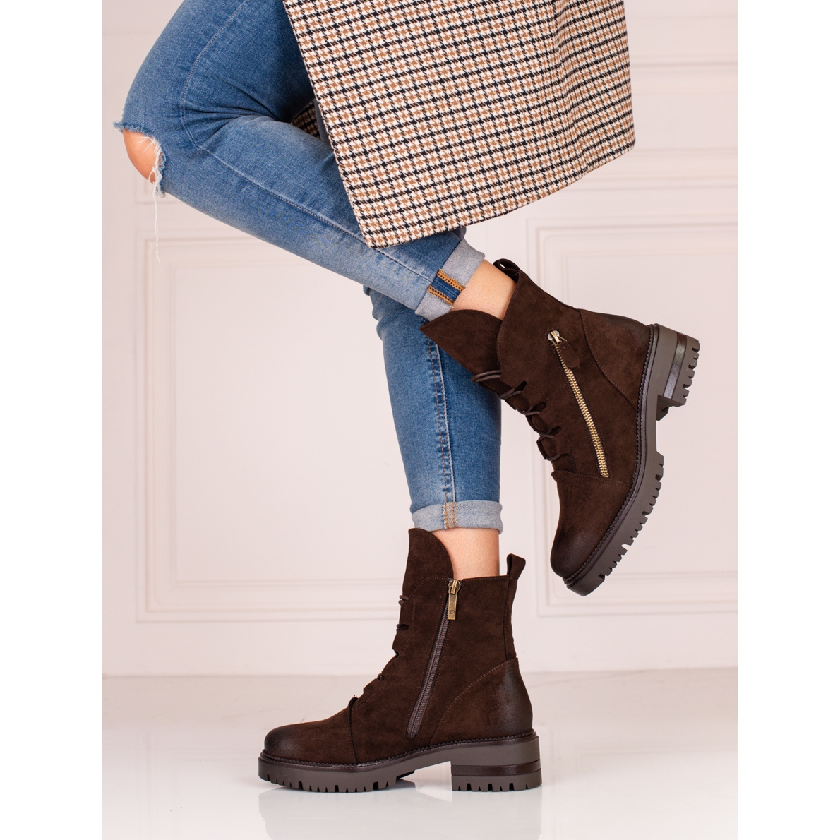 Choisissez les ouvriers W. Potocki pour femme en daim marron et ajoutez un peu de style rock à votre garde-robe de tous les jours !