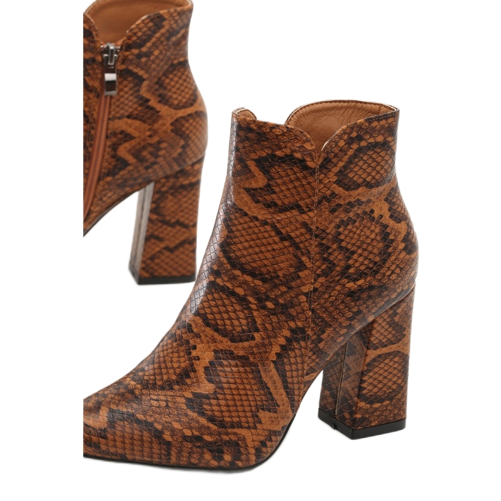 Nous vous présentons les bottines marron Vices 1581-68-camel, qui sont le complément parfait à toute garde-robe féminine. Fabriquées en éco-cuir imitation peau de serpent de haute qualité, ces chaussures élégantes s'intègrent parfaitement dans les tendances de la mode. Avec un talon conique de 9 cm de haut et un bout pointu, elles ajoutent un caractère distinctif à n'importe quel style.