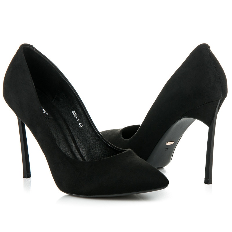 Talons hauts en daim VICES - un classique dans une version tendance. Du daim écologique noir, une pointe fine et un talon aiguille de 10,5 cm créent un modèle intemporel, parfait pour une soirée, une célébration ou un événement élégant.