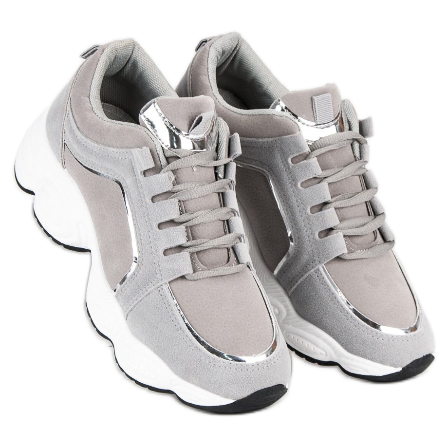 Leur design se distingue par un minimalisme moderne, et la couleur grise avec de délicats inserts argentés les rend parfaitement en phase avec les tendances actuelles. La semelle crantée en caoutchouc garantit non seulement une bonne adhérence, mais également un confort d'utilisation. De plus, la hauteur de la plateforme de 3 cm offre un peu de hauteur sans sacrifier le confort.