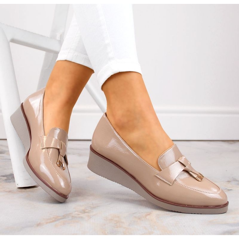 Ce modèle est intégré à un coin confortable de 4 cm de haut, ce qui garantit un confort optimal lors du port, et en même temps ajoute quelques centimètres de haut, modélisant la figure. Grâce à leur couleur beige intemporelle, ces chaussures s'adapteront à presque toutes les stylisions féminines, des ensembles décontractés à un look élégant.