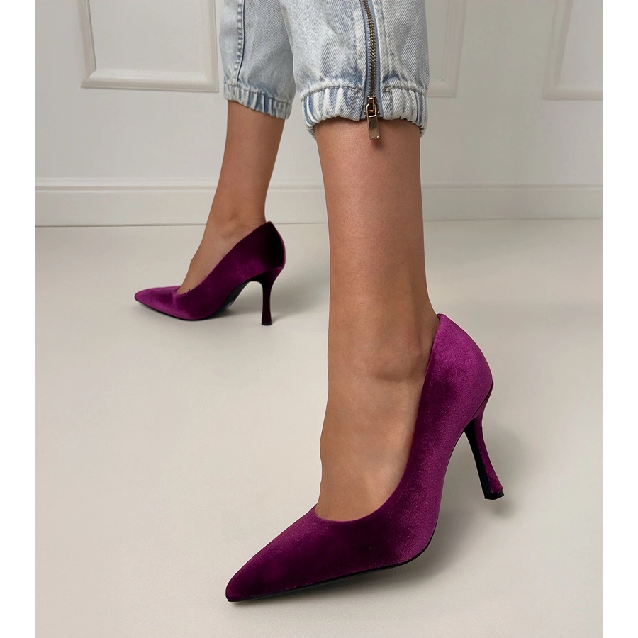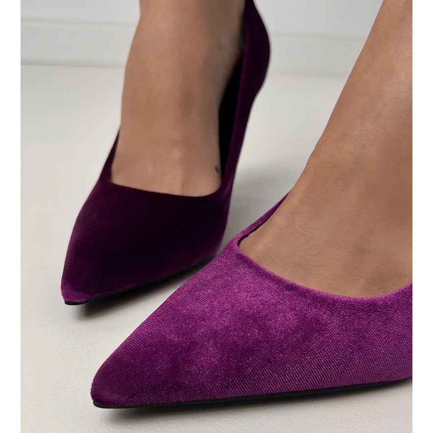 Détails: Violet Velor pompe sur un talon haut