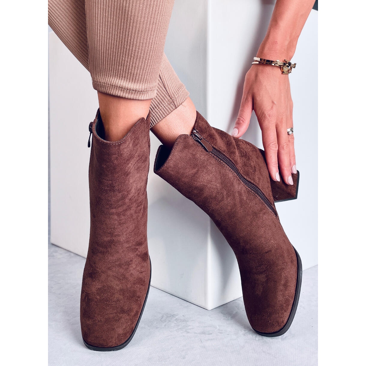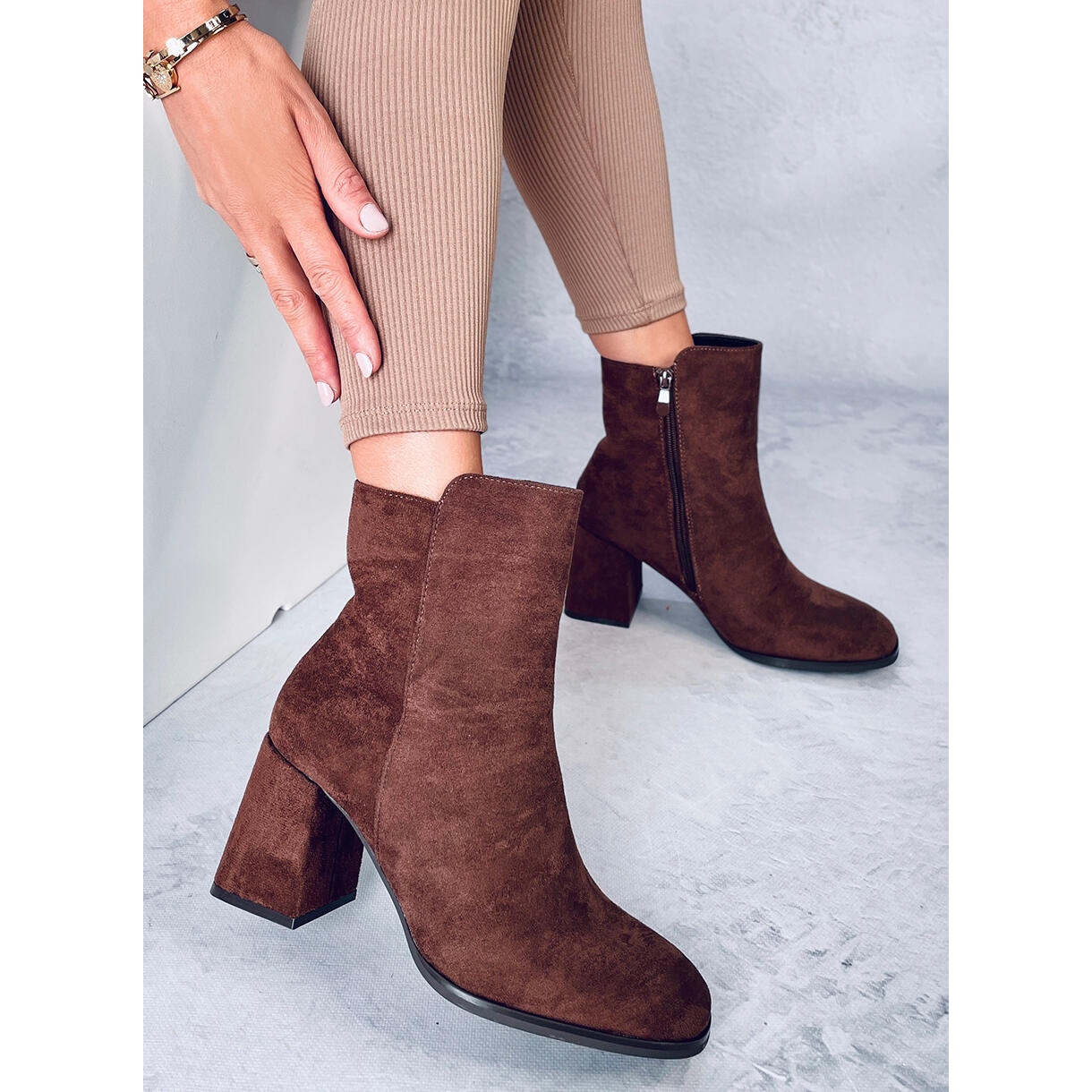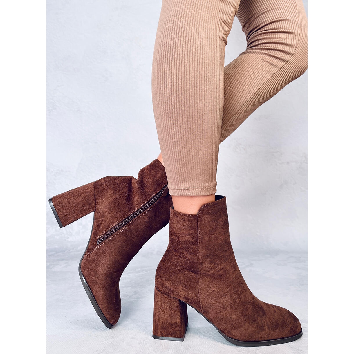 Talons hauts lisses Weish Brown - Élégance et confort chaque jour. Les bottes en daim dans une teinte brune chaude sont combinées avec un orteil carré à la mode avec un pilier stable et large (environ 7,5 cm), offrant une certaine étape et une figure féminine. L'attache de fermeture éclair latérale le rend plus facile à mettre, l'intérieur est bordé de fourrure douce, grâce à laquelle les chaussures fonctionneront également les jours plus frais.