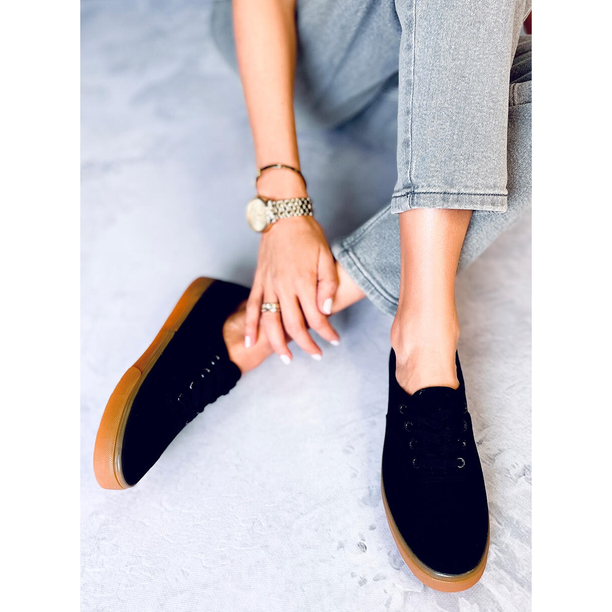 Les baskets féminines de Werde Black - un classique en noir, qui va avec tout. La coupe verrouillée et intemporelle offre un confort et une stabilité chaque jour, et une semelle en caoutchouc légère (hauteur de plate-forme d'environ 2 cm) rend le modèle confortable toute la journée. Le tissu supérieur et intérieur en tissu (toile) assure la respirabilité et l'insert doux bordé de matériau augmente le confort de l'utilisation. Nez rond, style lisse - universel pour les jeans, les robes et les stylisations décontractées.