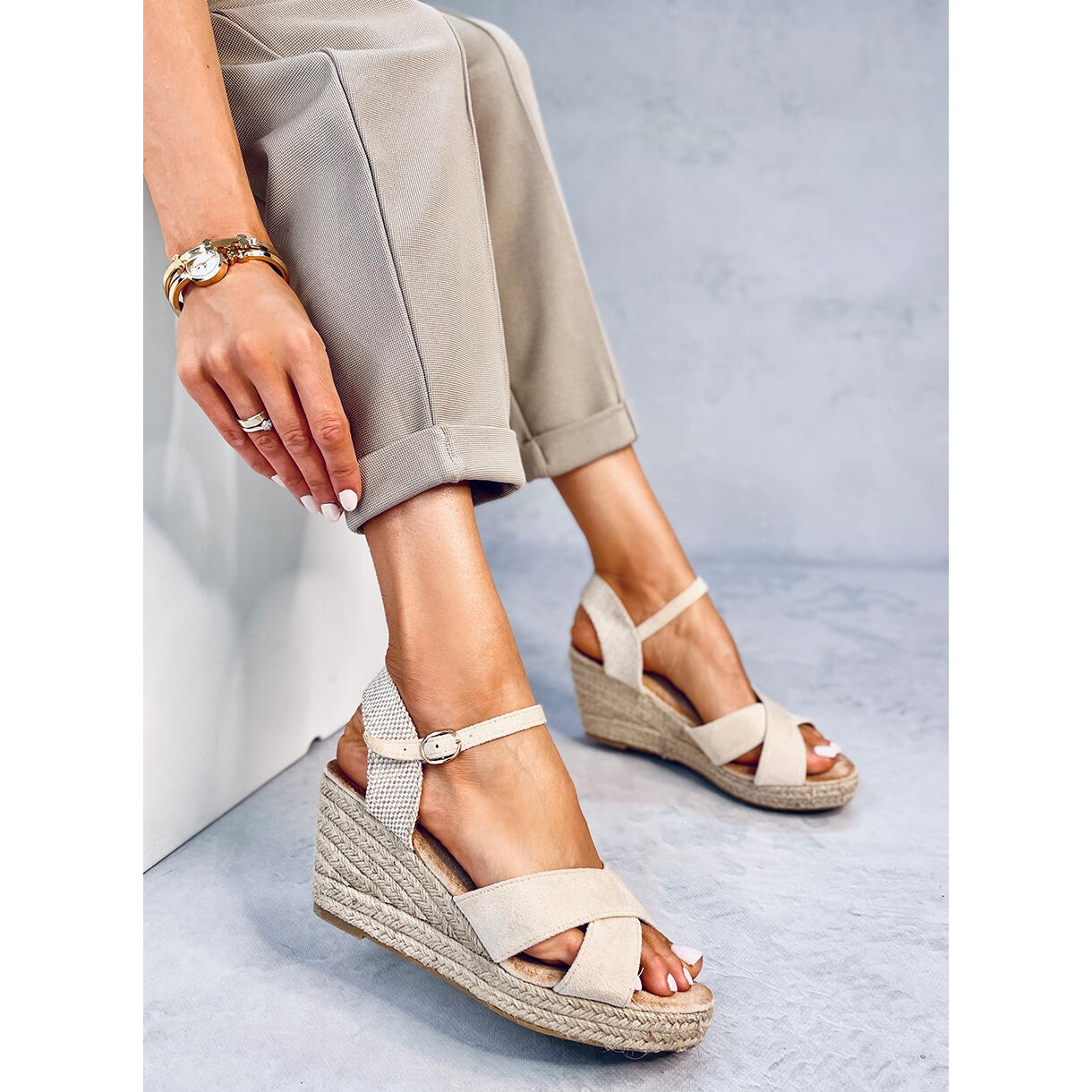Détails: Willa Sandales compensées espadrilles beiges