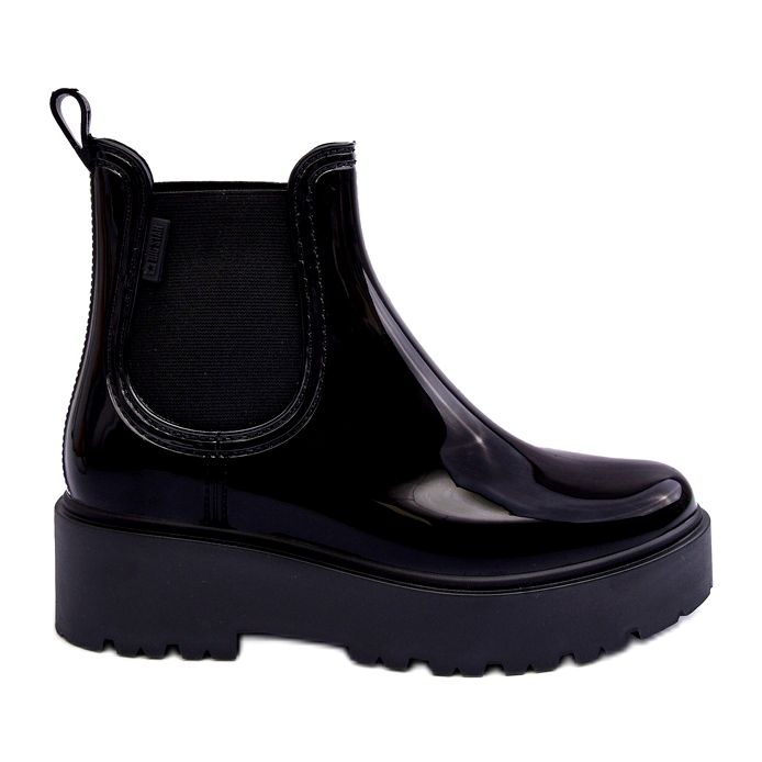 Fabriquée en plastique en caoutchouc de haute qualité, les bottes en caoutchouc sont caractérisées par un design solide et un confort de l'usure. Les inserts flexibles sur la tige permettent de se mettre faciles et le nez arrondi permet le confort de toute étape. Ce modèle a une plate-forme massive d'une hauteur de 5 cm, ce qui ajoute non seulement un peu de modernité, mais assure également la stabilité et le confort lors de la marche.