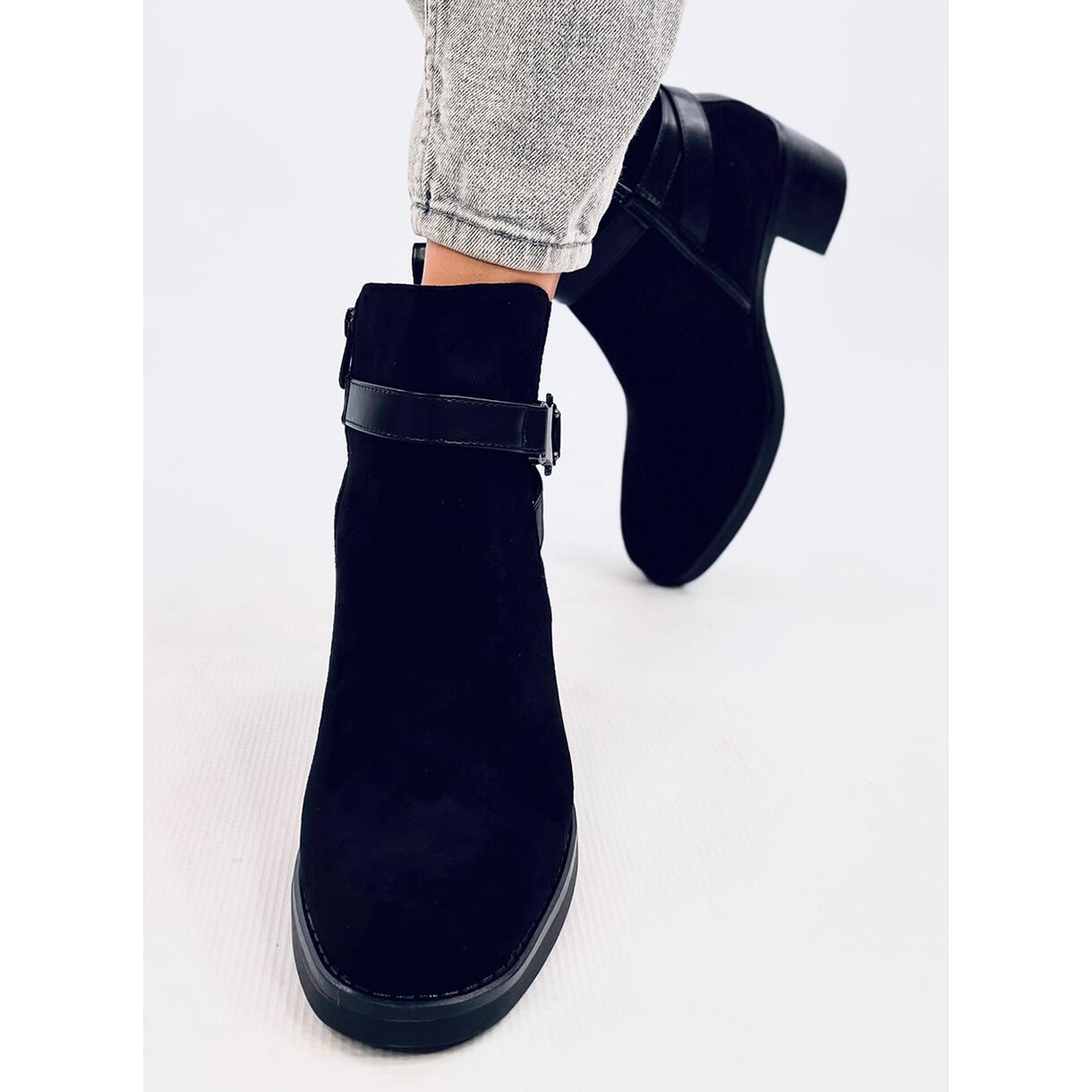 Les bottines à talons stables sont un choix parfait pour les femmes qui apprécient le confort et le style classique. Ces élégantes bottes noires, confectionnées en daim écologique de haute qualité, deviendront certainement un élément indispensable de votre garde-robe.