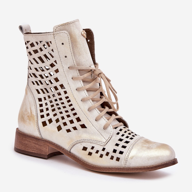 Nous présentons des bottes en cuir OpenWork en cuir 2627 dans une teinte dorée essuyée unique, qui ajoutera de la splendeur à toute stylisation. Fabriquées en cuir naturel de la plus haute qualité, ces bottes combinent l'élégance avec le confort.
